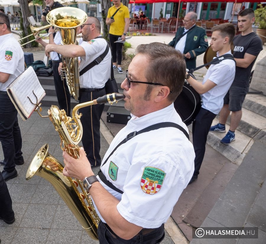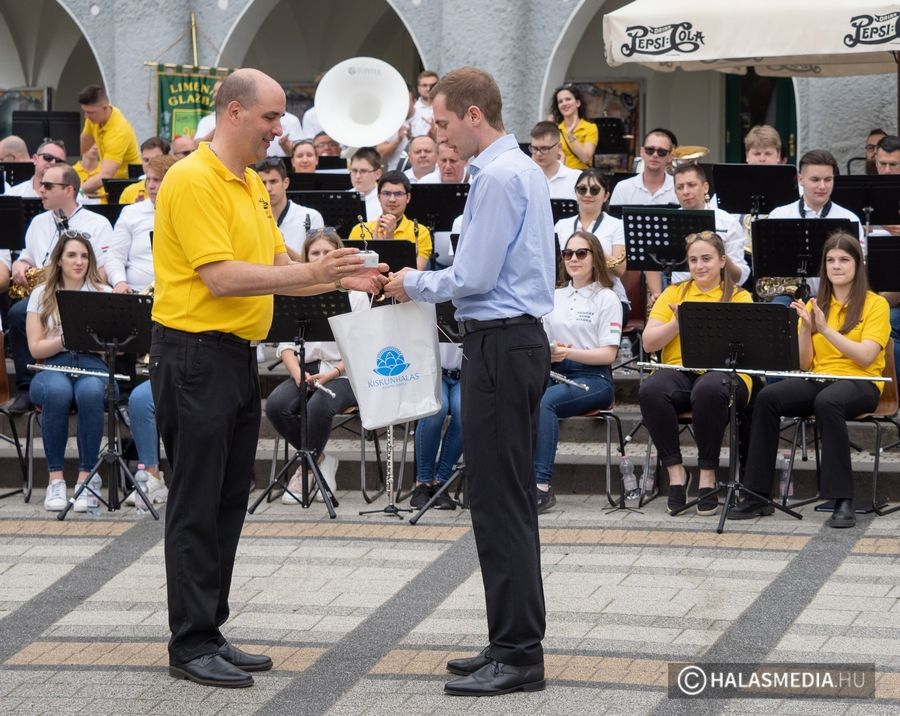 Nemzetközi Fúvószenekari Találkozó Kiskunhalas. Ezzel a címmel szerveztek közös produkciót vasárnap délután a Bethlen Gábor térre négy fúvószenekar. A főtéri koncertet térzene előzte meg a város különböző pontjain. Fülöp Róbert polgármester köszöntötte az együtteseket és a szépszámú közönséget, aztán zenekari ismertetőkkel megszakítva egy órás főtéri koncert vette kezdetét, a mintegy 150 fős csapat összehangolt előadásával. Az esemény végén Lauer Zsolt, a szervező Halas Concert Band karnagya ajándékozta meg a társegyüttesek vezetőit.