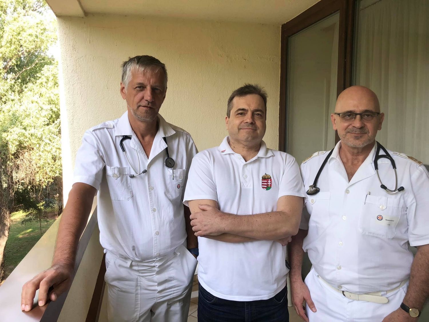 Bányai Gábor a kezelését irányító dr. Kósa István és a dr. Kohout László ezredes, kórházigazgató társaságában