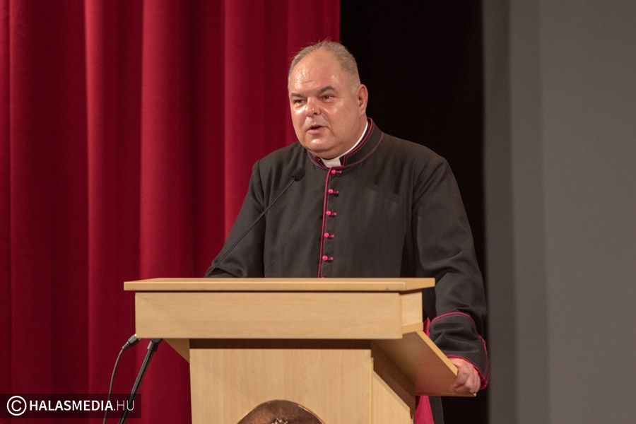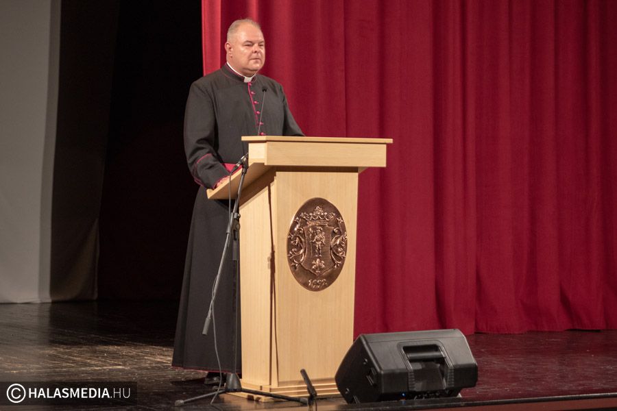 Az ünneplők ezt követően a Városi Filmszínházban gyűltek össze. Az 1956-os megemlékezésen Hozdik Zsolt kanonok-plébános mondott beszédet. A nagybányai születésű egyházi vezető elmondta, személyesen is érintett a történésekben, nagyanyja egy vers elszavalása miatt került börtönbe az akkori rendszerben. Hozdik Zsolt atya arra is felhívta a figyelmet, hogy a mindenkori fiatalságnak meg kell ismernie az igazságot, a valódi értékeket. Felidézte azokat a magasztos pillanatokat is, amikor a nemzeti lobogó közepéről először kivágták a címert.