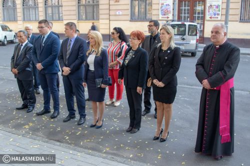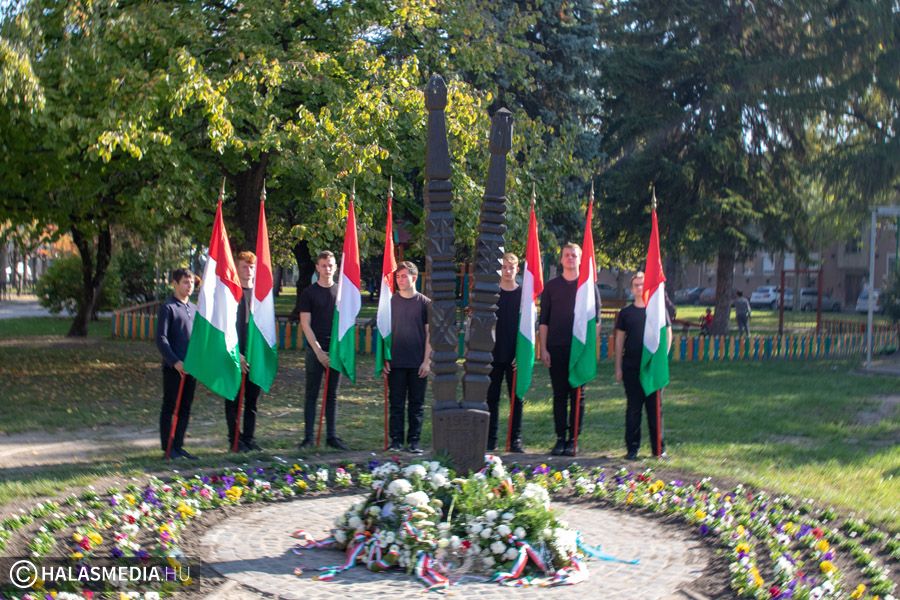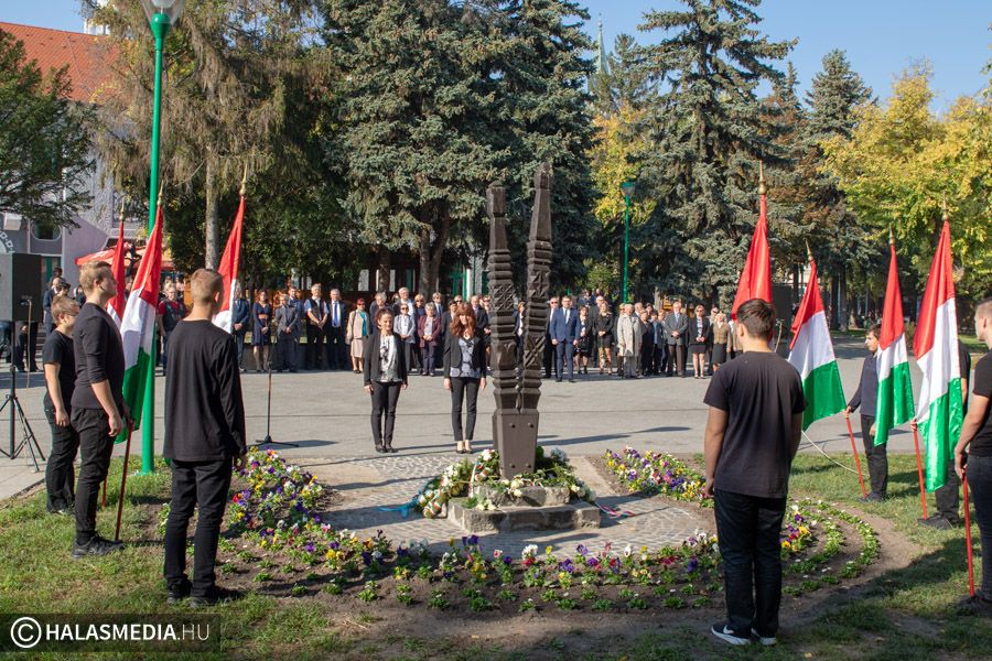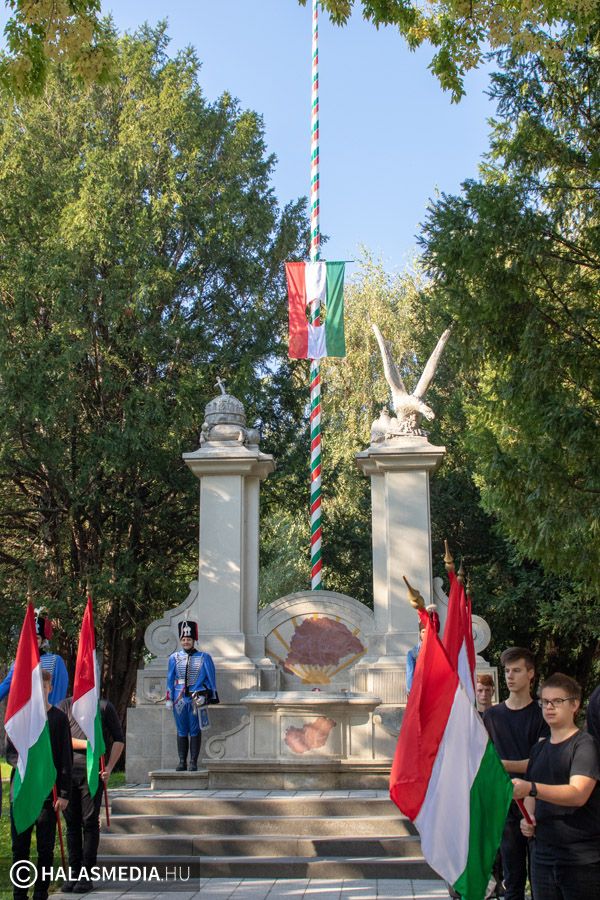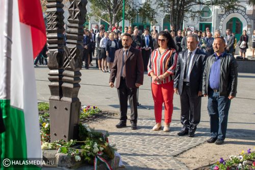A kiskunhalasi megemlékezés az Országzászló emlékműnél kezdődött. A Halasi Lovasbandérium állt díszőrséget, majd a Halas Concert Band adott zenei kíséretet a nemzeti lobogó felvonásakor.