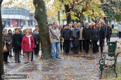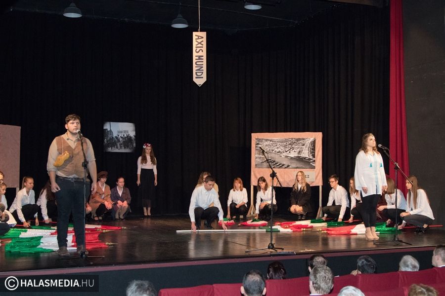 Az ünnepi műsort a Bibó 11. osztály adta elő, közreműködött Zámbó Anna 8. osztályos tanuló és Zámbó Luca, a Jánoshalmi Hunyadi János Általános Iskola 5. osztályos tanulója. A diákok elszavalták a kiskunhalasi születésű Kannás Alajos verseit is. A halasi megemlékezés a főtéri kopjafánál folytatódott. A sortűz két áldozatának, Gyöngyösi Papp Idának és Poloznyik Kálmánnak az emlékművénél helyezték el a tisztelet virágait a megemlékezés résztvevői. A résztvevők ezt követően a katolikus temetőben felkeresték a volt kisgazda politikus Nagy Szeder István sírját. Az ő nevéhez köthető a Halasi Norma megalkotása is.