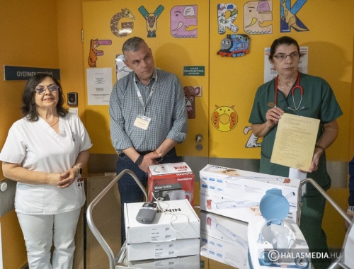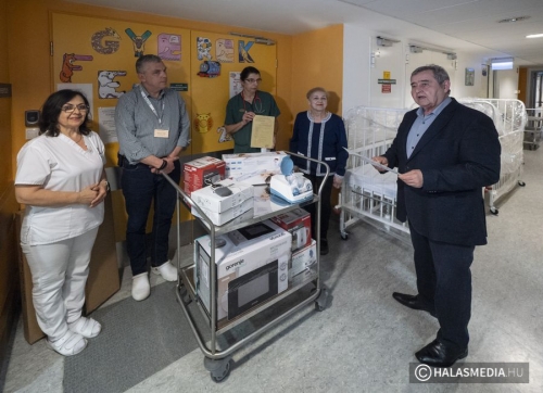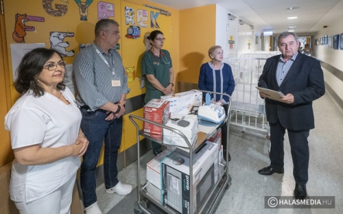 Bensőséges, családias hangulatú eseményen adtak át a Kiskunhalasi Semmelweis Kórház a Szegedi Tudományegyetem Oktatókórháznak kedden délután 2 millió forint összegű kényelmi eszközparkot az Életünk a gyermekünk Közhasznú Alapítvány képviselői. Az eszközök a Csecsemő és Gyermekosztályát és a Kora-Újszülött osztály felszereltségét erősítik.