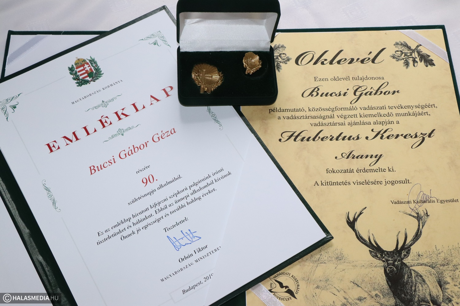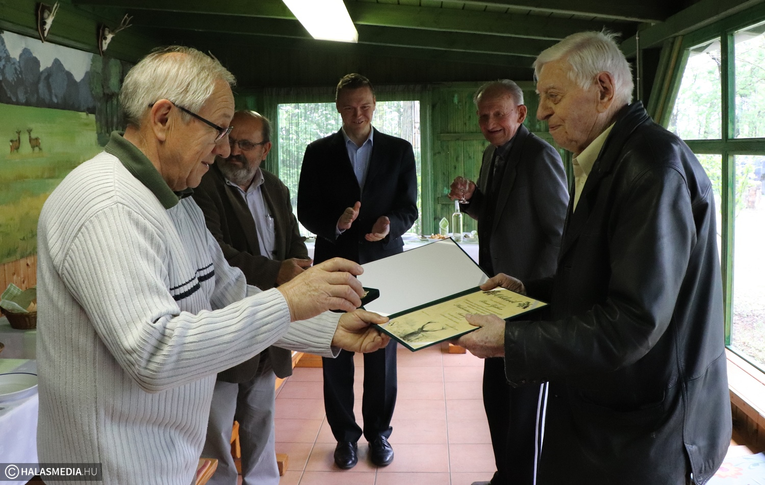 Kilencvenedik születésnapját ünnepli a halasi Bucsi Gábor Géza. A kerek évfordulón Fülöp Róbert polgármester adta át a gratuláló oklevelet, ám az ünnepelt egy másik meglepetésben is részesült. Vadásztársaitól a Hubertus Kereszt arany fokozatát vehette át. Az ünnepséget stílszerűen a zsanai vadászházban tartották, a vaddisznópörkölt elfogyasztása után pedig felidézték az emlékeket, többek között a legendás medvevadászatokról.