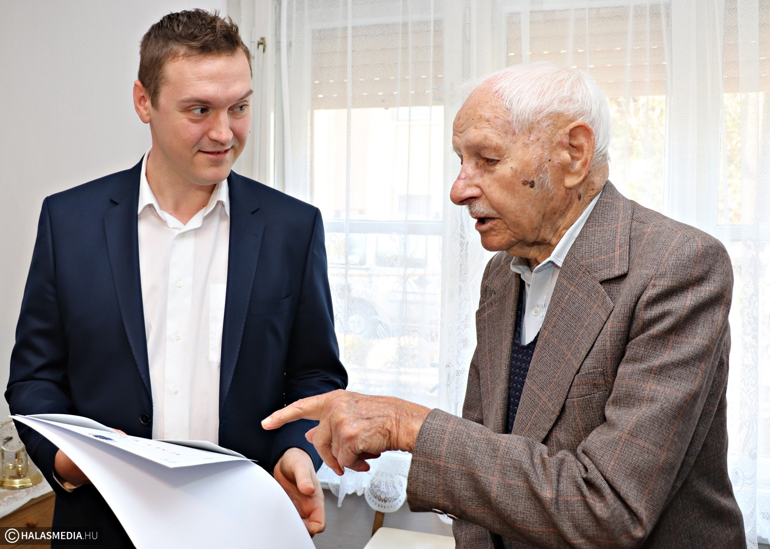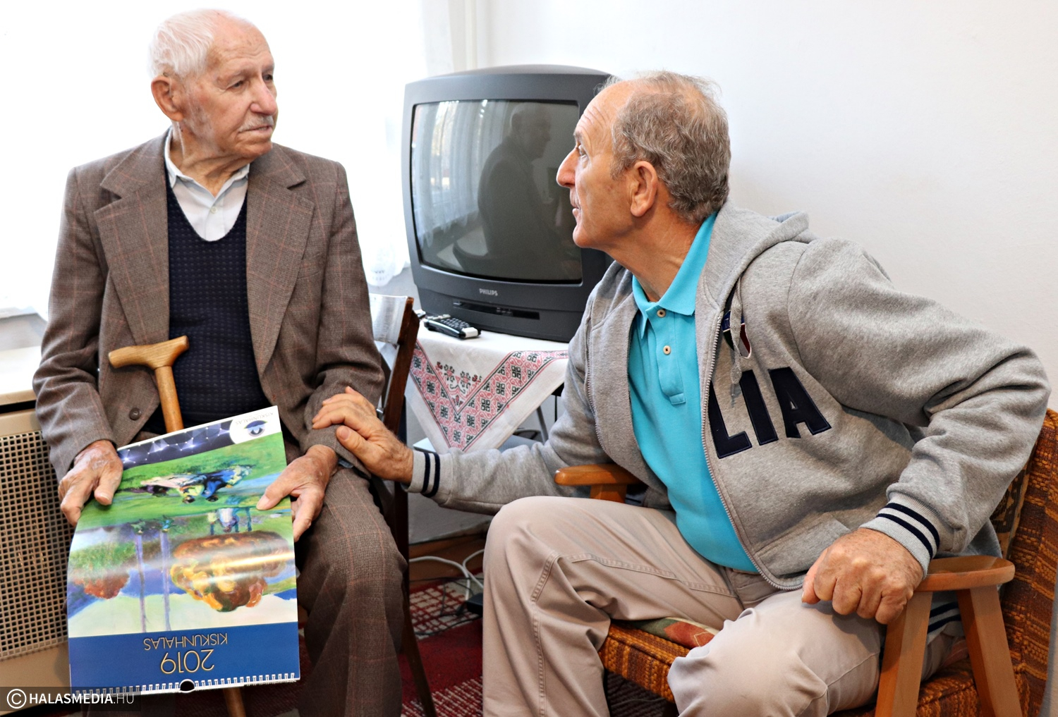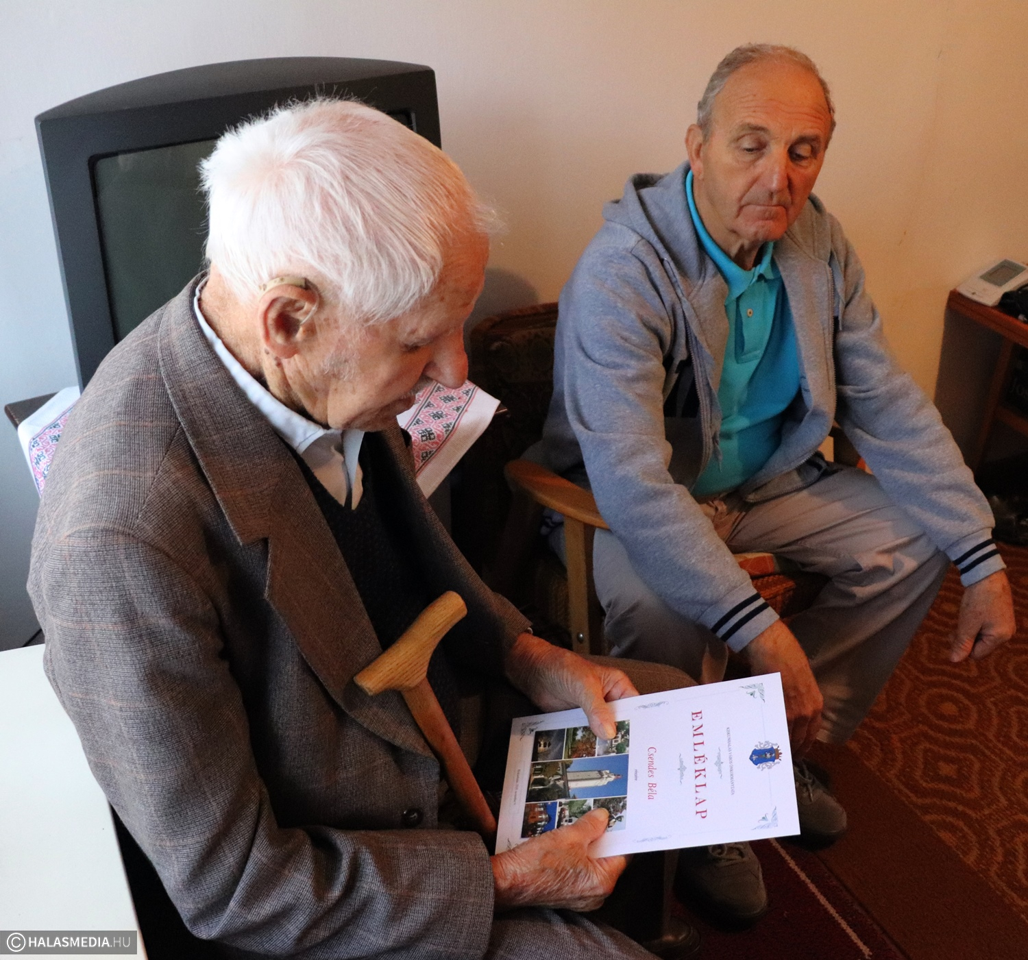 Megtudtuk, hogy szeret televíziót nézni, a híradókat és a sportműsorokat nem szívesen hagyja ki. Kedveli a focit és a tornát is, de azt mondta, az volt az igazi, amikor még tudta gondozni a kertjét. Volt kis szőlőlugasa az udvaron és maga szedte fel a krumplit a kertben. Egy kisebb baleset érte, azóta bottal jár, ennek ellenére kiváló egészségnek örvend. Elárulta nekünk, hogy soha, semmije sem fáj. Mesélt arról, amikor fiatal korában bejártak a halasi piacra és hozták Sűrű-Tajóról a paprikát eladni. Emlékszik arra is, amikor Horthy Miklós Kiskunhalason járt. Imádott felesége már nem él, két gyermeke is elhunyt, viszont négy unokája és hét dédunokája mindig szeretettel veszi körül. Béla bácsi nyugodtan letagadhatna 20-25 esztendőt. Megbeszélték a polgármesterrel, hogy legközelebb is eljön majd a születésnapjára. Az ünnepeltet szerkesztőségünk is megajándékozta egy vadonatúj falinaptárral. Béla bácsi, boldog születésnapot! (Részletek az esti híradóban és a szerdai Halasi Tükörben.)