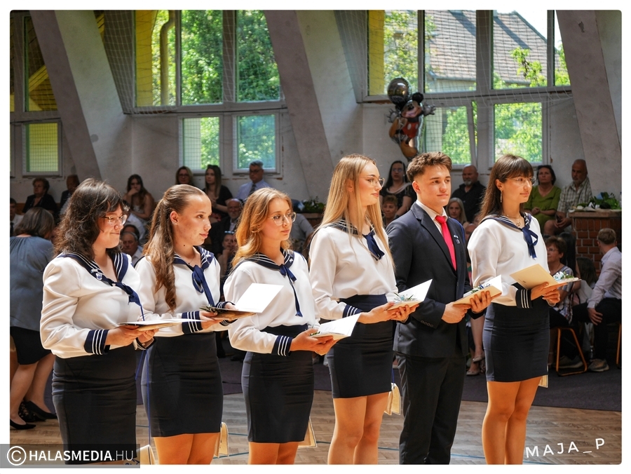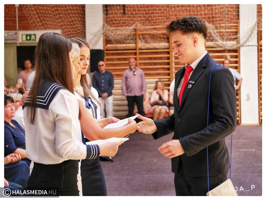 A Kiskunhalasi Bibó István Gimnázium is megrendezte ballagási ünnepségét a hétvégén. A tizenkettedik évfolyam tagjai jelképesen, még egyszer utoljára közösen járták végig az iskola tantermeit, majd az intézmény sportcsarnokában megható és boldog pillanatok váltották egymást.