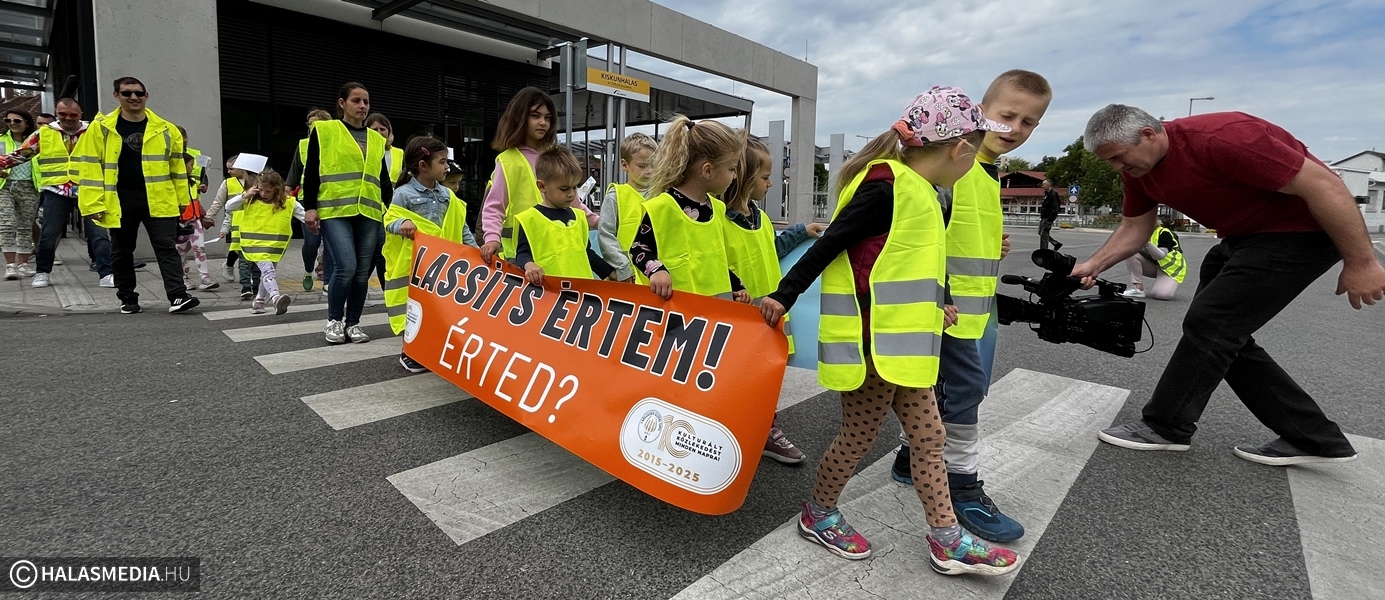 Különleges sétát tett vasárnap délelőtt a Gólyafészek Óvoda Szívecske csoportja Kiskunhalas belvárosában. Nem véletlen, hogy éppen május 11-én tették mindezt, ugyanis az ovisok, a szüleikkel szerették volna felhívni a figyelmet a közlekedési kultúra fontosságára. A gyermekek és családtagjaik, láthatósági mellényben érintettek jó néhány gyalogátkelőt.