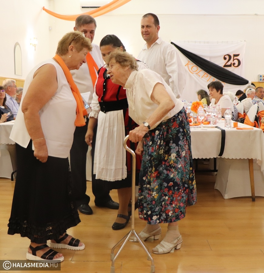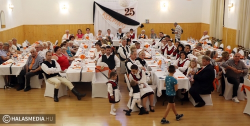 A program ebéddel folytatódott a Tiszti Klub nagytermében. Ezt követően Tóth Tibor, a Magyar Kolping Szövetség felügyelőbizottsági tagja köszöntötte a megjelenteket, majd közösen elmondták a Kolping Család imáját. A halasiak a negyedszázados ünnep kapcsán ajándékokkal kedveskedtek a gyergyóiaknak és Gál Istvánné elnök egy szalagot kötött fel a zászlójukra. Negrusa Nicu egy díszes tányért, egy Erdélyről szóló képeskönyvet, valamint egy faragott vándorbotot nyújtott át a házigazdáknak. Az erdélyiek egy műsorral kedveskedtek a halasiaknak. - Most is voltak rövid visszaemlékezések, ismertetők, de az igazi emlékek a szívünkben vannak - mondta Gál Istvánné elnök.