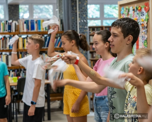 Szintén alapeleme volt táborunknak a könyvtári kézműveskedés, amelyben a kézügyesség és a kreativitás találkozott a gazdag gyermeki fantáziával. Ezekből a foglalkozásokból kézzelfogható remekművek születtek – mondta a könyvtárvezető. A gyerkőcök Halas érdekességei között megismerkedtek a bíróság épületével és jártak a Thorma János Múzeumban. A múzeumigazgató, Kocsisné Varga Zsuzsanna remek régészeti előadást tartott a csapatnak, mit nagyon élveztek.