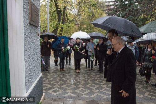 1957. október 27-én, szombaton délután gyülekezett a tömeg a halasi főtéren. Sortűz dördült, amelynek során a 19 éves Gyöngyösi Papp Ida és a 61 éves Poloznyik Kálmán életét vesztette, többen súlyosan megsebesültek. Rájuk emlékeztek a városháza falán elhelyezett táblánál. Pajor Kálmán, az 56-os Emlékbizottság elnöke idézte fel a tábla elhelyezésnek történetét. Máté Lajos, a bizottság tagja mondott beszédet, ennek során felidézte az 1956-os forradalom kiskunhalasi eseményeit és a sortűz körülményeit.