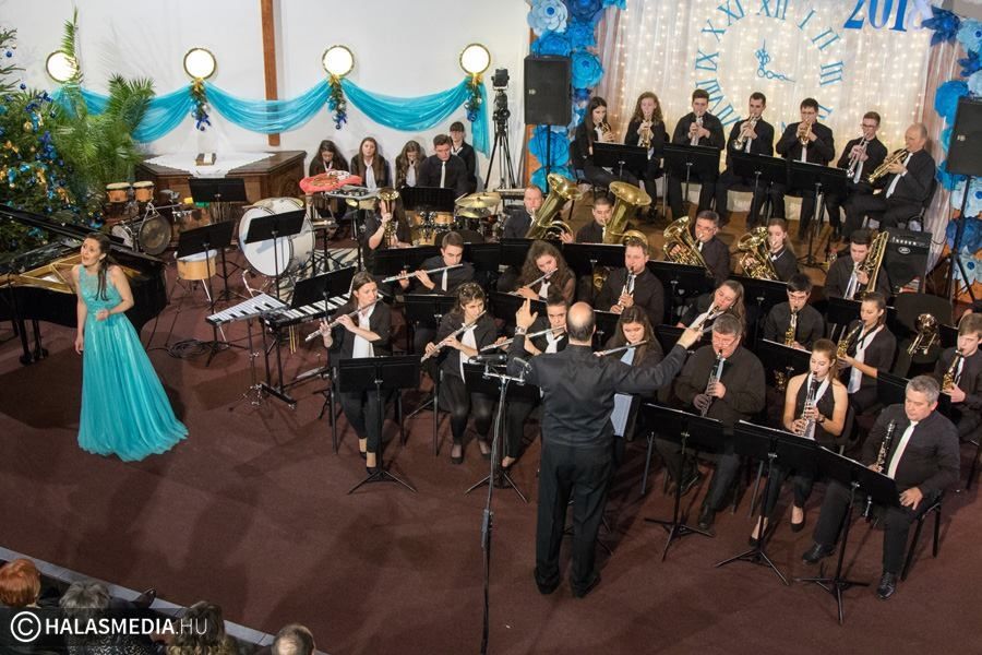 Már szinte hagyományos, hogy az újévi koncertet a Kiskunhalasi Városi Fúvószenekar tartja, mint elhangzott, büszkék lehetünk rájuk, hogy évről-évre megörvendeztetnek bennünket játékukkal. A repertoárjukon a komolyzenétől a klasszikusokon át egészen a mai aktuális slágerekig minden szerepel. Vendégművészek is felléptek a közel három órás koncerten, Gál Gabi énekművész előadása és Schindler Regina zongorajátéka is gazdagította a kulturális eseményt. Idén a diákpolgármester is köszöntőt mondott, Hegedűs Ildikó arra hívta fel a figyelmet, hogy a Diákönkormányzat elindítása és működtetése nagyon jó kezdeményezés.