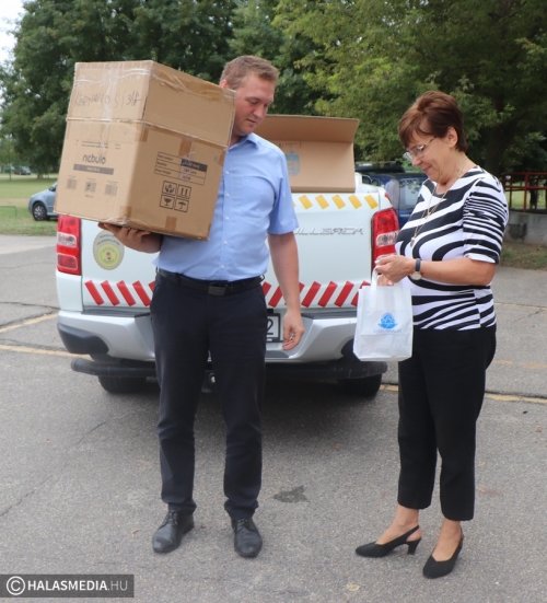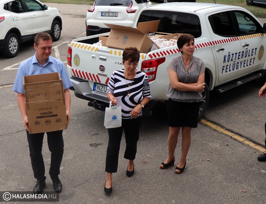 Az idei a negyedik olyan év, hogy az önkormányzat tanévkezdési csomaggal segít minden, kiskunhalasi általános iskolába beiratkozó elsős diákot. Ezúttal 246 ilyen pakk készül és ezeket még a héten kiszállítják valamennyi intézménybe. Elsők között a Kiskunhalasi Kertvárosi Általános Iskolába érkeztek meg a csomagok, itt Laskovicsné Terzics Edit igazgató Fülöp Róbert polgármestertől vette át a tanszereket.
