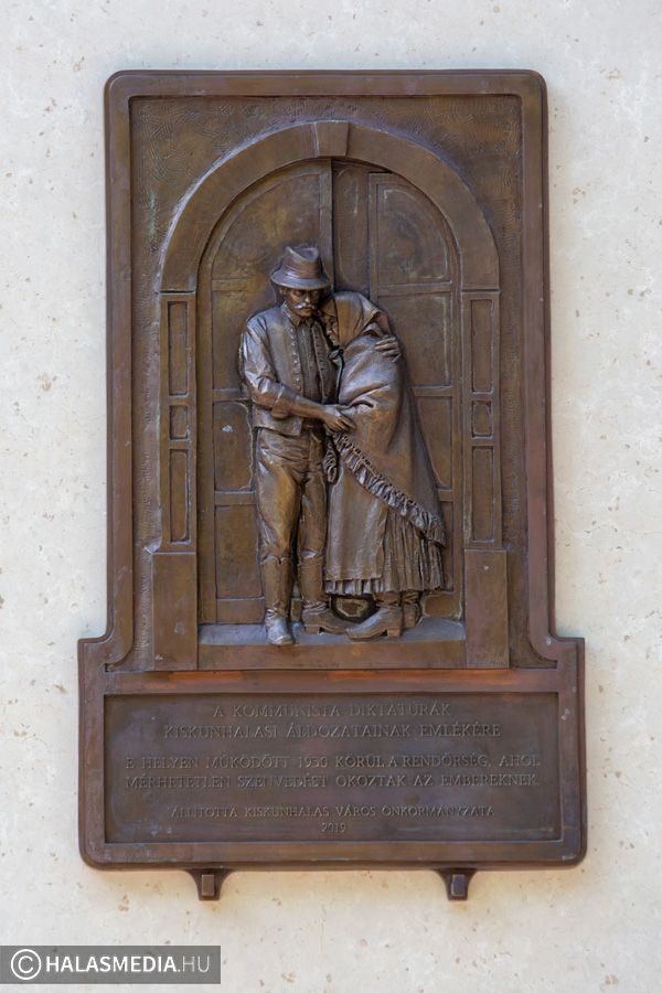 Kiskunhalas önkormányzatának kérése alapján elkészült a városháza épületének múzeum felőli sarkánál - az egykori rendőrség és börtön helyén - a Kommunista diktatúrák Kiskunhalasi áldozatai előtt tisztelgő bronz dombormű, a bajai Szabó Áron alkotása. A kapun kilépő korabeli viseletben látható férfit és nőt ábrázoló domborművet Fülöp Róbert polgármester és az alkotó leplezték le és adták át ezzel a város lakóinak. A szobrászművész elmondta: nem csak a szomorúságot, az elkeseredettséget, de a reményt is próbálta érzékeltetni az alkotásban.