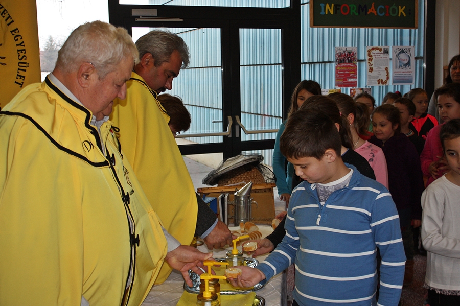A szíves szó mellett egy-egy falat kenyeret kaptak a gyerekek, amelyre a méz fajtáját mindenki maga választhatta meg.