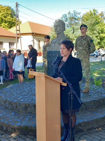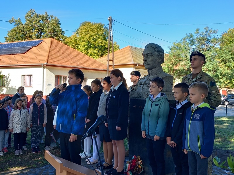 A Kiskunhalasi Felsővárosi Általános Iskola és a Kuruc Vitézek Nyugállományú Egyesület hívta megemlékezésre a halasiakat az iskola előtt álló Gábor Áron szoborhoz. Az eseményen részt vettek a Kiskunhalasi Szakképzési Centrum Dékáni Árpád Technikumának Honvéd Kadétjai is.