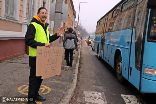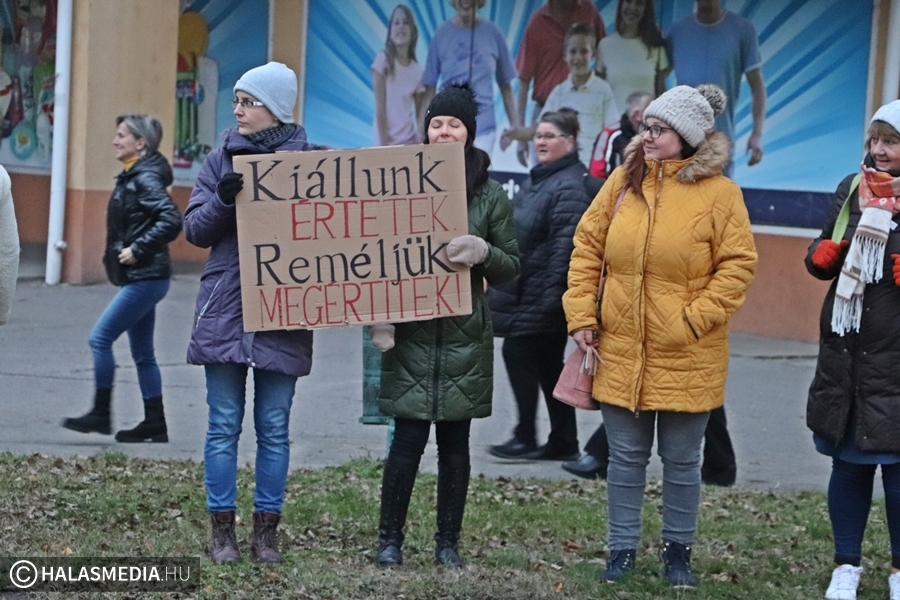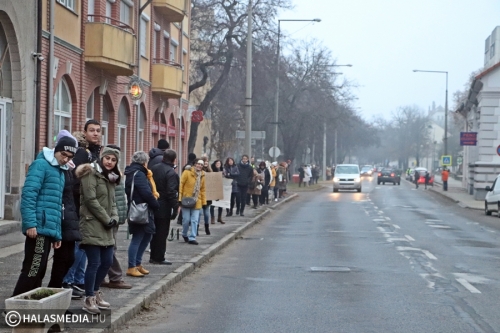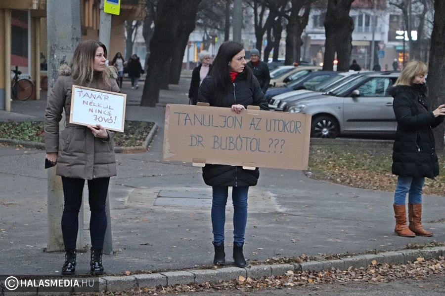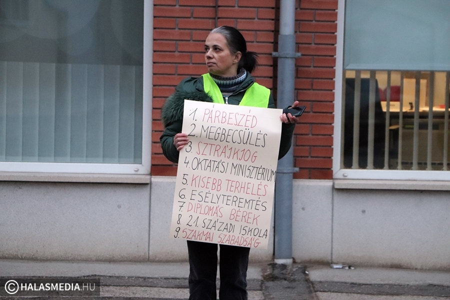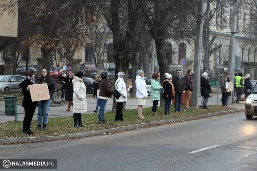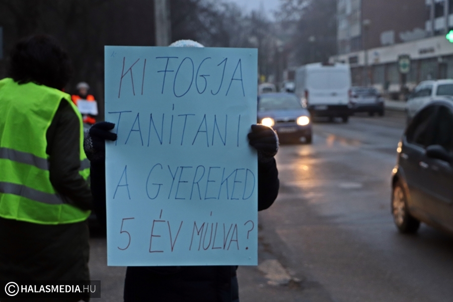 Csendes demonstráció helyszíne volt ma kora reggel a Kossuth utca. Tanárok, szülők, szimpatizánsok élőlánccal fejezték ki a magyarországi oktatás állapotával kapcsolatos aggodalmukat. Véleményük szerint a jelenlegi helyzetbe beletörődő hallgatás helyett ki kell állniuk a gyógyítást sürgetők mellett. Véleményük szerint az oktatás ügye nem pártállás kérdése, hanem össztársadalmi ügy. A demonstrálók egyetértenek a Civil Közoktatási Platform által megfogalmazott 9 ponttal.