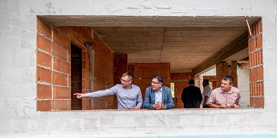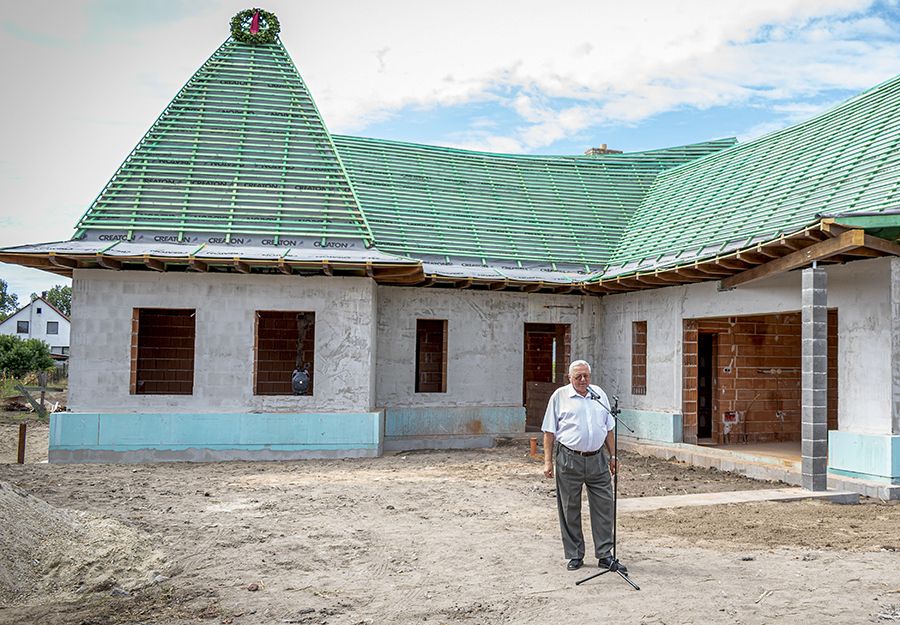 Papp Lóránt, az Anloma Kft. építőmérnöke a kivitelezésről beszélt. ”Az épület önmagáért beszél és a munka nagy kihívás nekünk. Mind a tervezői, mind a megrendelői oldalról pozitív hozzáállást tapasztalunk, ami építően tesz hozzá a kivitelezéshez. Ez vonatkozik a műszaki és az esztétikai igények kielégítésére is. Célunk, hogy a kulcsrakész átadáskor az épület a településnek és a térségnek is ékköve legyen ” – mondta a mérnök.
