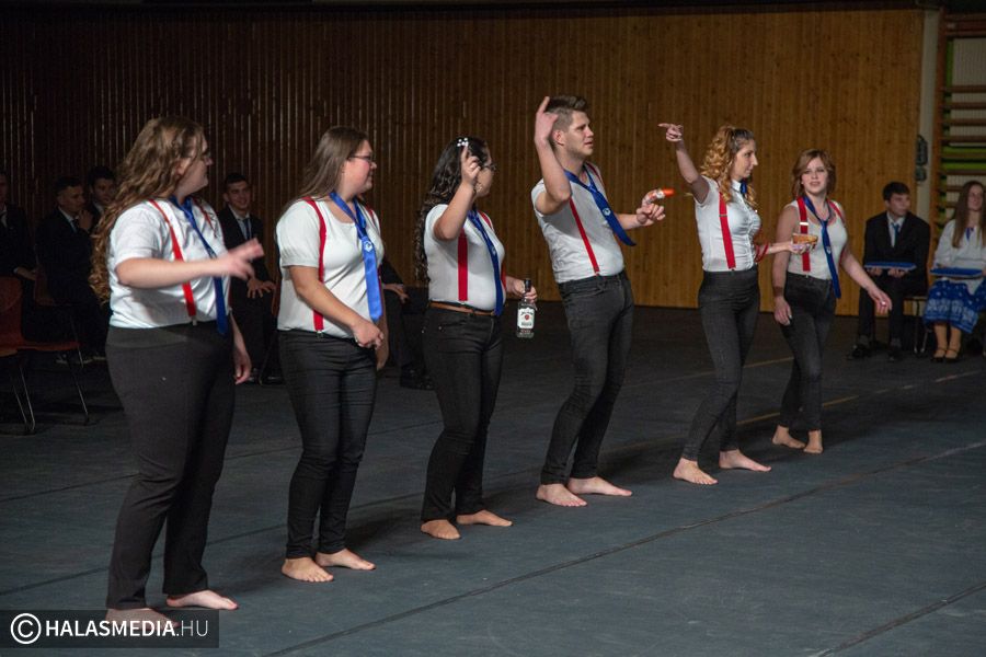 A program első felében egy irodalmi összeállítást láthatott a közönség Sajdik Zsófia, Andó Klaudia, és Horváth Soma Richárd érettségizős, végzős tanuló előadásában. Az utolsó évfolyamosok nevében Lengyel Kitti egy verssel búcsúzott az iskolától és a diáktársaktól. Szabó Edina igazgatónő gondolatai után az arra méltó tanulóknak az intézmény vezetője tűzte fel a szalagot. Idén Moravcsik Martin, Lévai Márton, Lengyel Kitti, Molnár Alexandra, Földi Evelin, Müller Péter Dezső, Szekszárdi Mónika, Torgyik István Márk, Varga Gergő és Rácz Máté volt érdemes erre versenyeken elért eredményeik, szorgalmuk elismeréséül.
