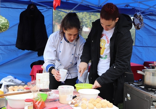 Kora reggel már szorgosan építették a főzőstandokat a csapatok. A zsűri Sós Dezső közétkeztetési mesterszakács vezetésével mustrálta a főzőhelyek kialakítását, a versenyzők öltözetét és az ételkészítés folyamatát.