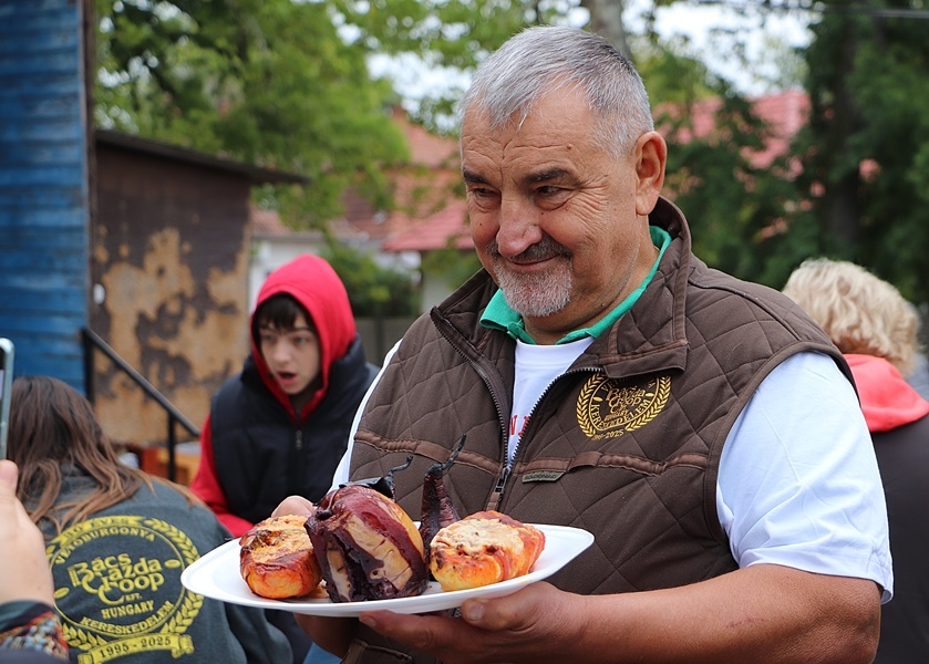 Szabó Lajos főszervező az egyik csapat ételével