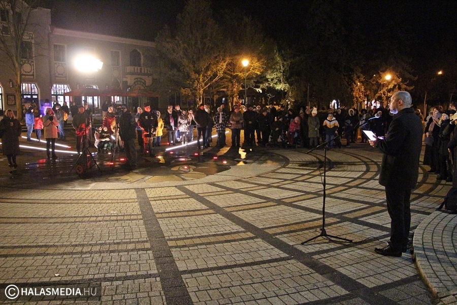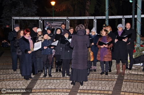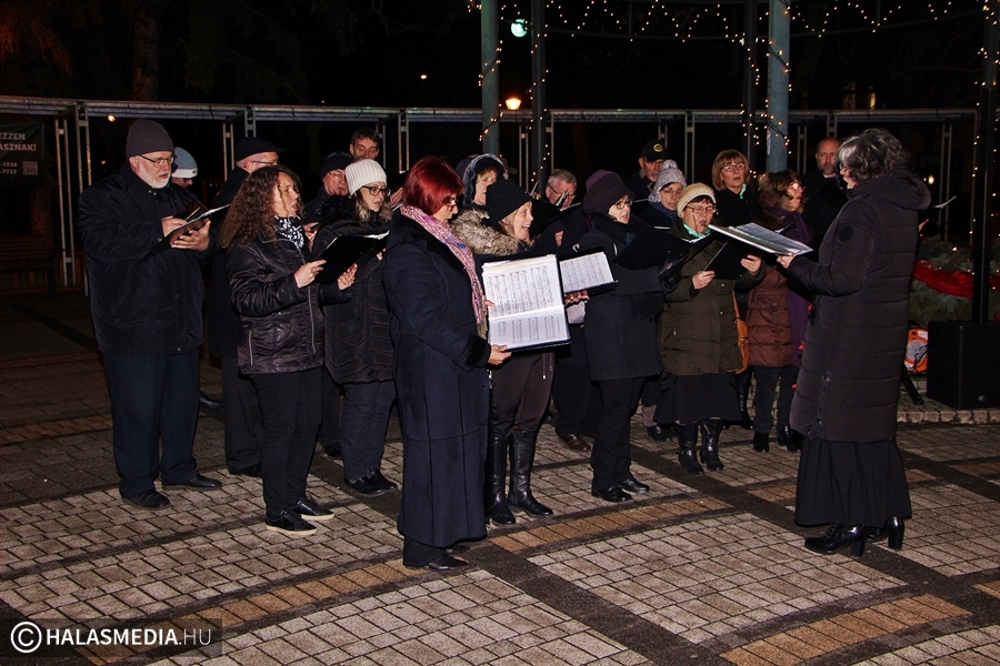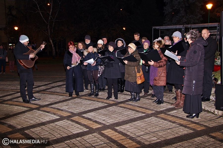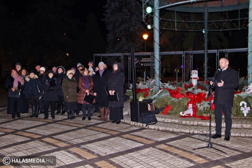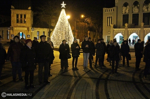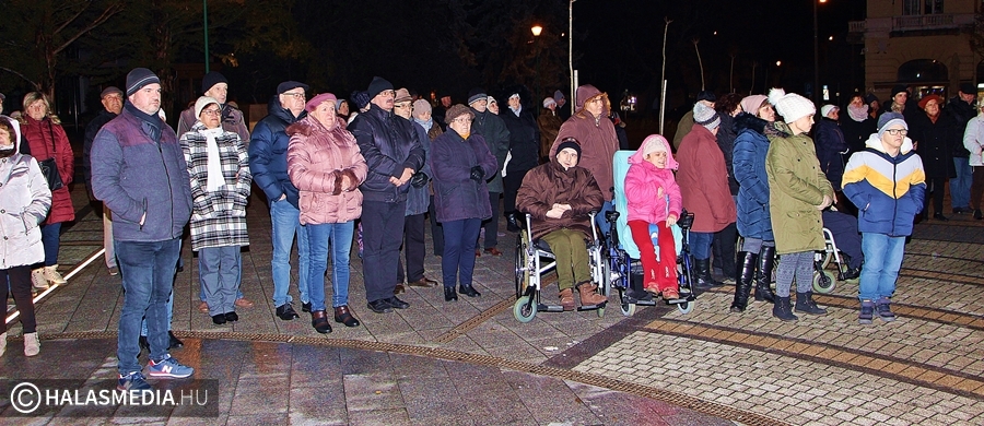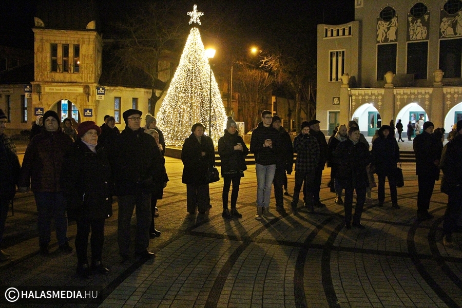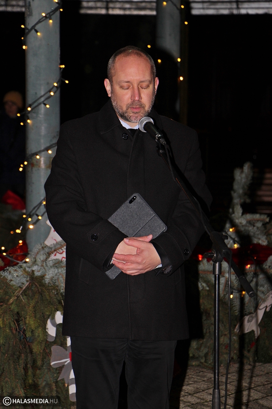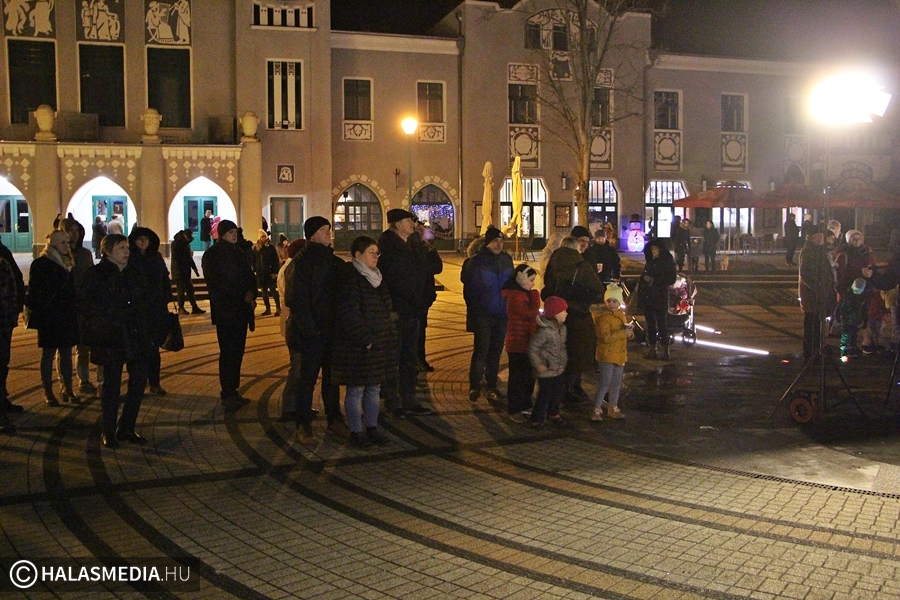 Vasárnap ismét közös gyertyagyújtásra várt mindenkit a programot szervező Halasi Média és Kultúra Kft. A főtéri zenepavilonnál, az óriási adventi koszorúnál ezúttal a református egyház készült műsorral, beszédet pedig Arany-Michels Richárd lelkész mondott.