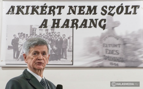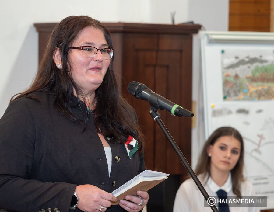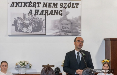 A rendezvényen beszédet mondott Dr. Bank Barbara, a kiállítás anyagát összeállító Keskenyúton Alapítvány, Nemzeti Emlékezet Bizottsága nevében. Az egyébként történészként tevékenykedő szakember a könnyeivel küszködve idézte fel a Délvidéken 1944-45-ben magyarokat ért brutális támadás előzményeit, világpolitikai hátterét, a bekövetkezés körülményeit, kiemelve egyes szóban - nehezen elmondható – drámai részleteit.
