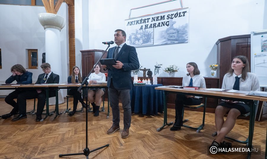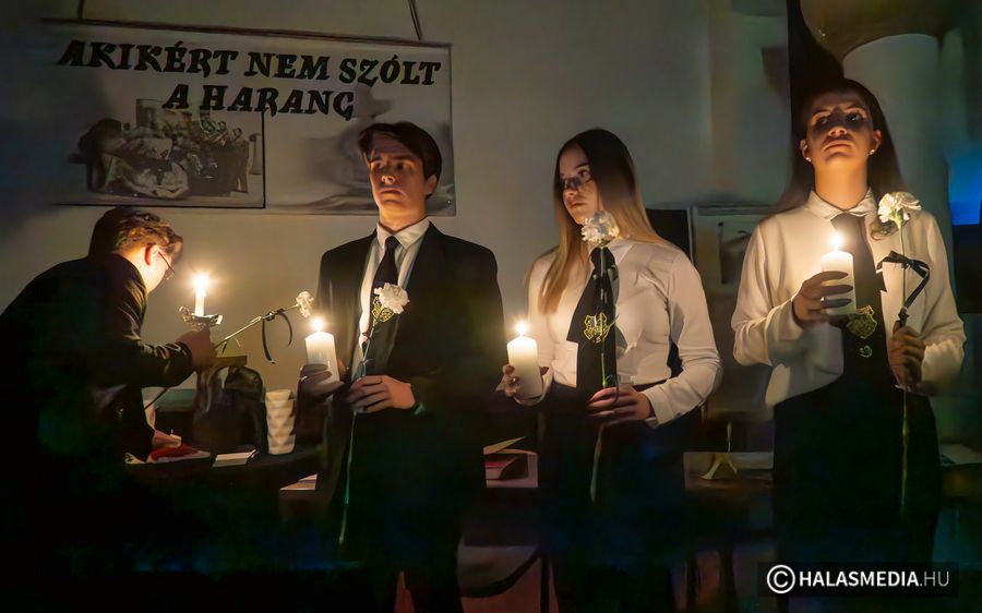 A megrázó történelmi ismertetés után a Lórántffy Zsuzsa Kamarakórus énekelt, Andáné Vastag Andrea vezényletével a közönségnek, felvezetve a II. Rákóczi Ferenc Katolikus Gimnázium és Technikum tanulóinak műsorát. A nyolcfős diákokból álló előadócsapat egy-egy áldozat történetét hozta el a közönségnek, elbeszélve a tragédiát megelőző élethelyzetüket. A rendhagyó irodalom órának tekinthető előadáson, Dr. Döme Ottó közreműködésével a diákok felkészülését és a történetek rájuk gyakorolt lelki hatását is érzékeltették a nézőkkel.