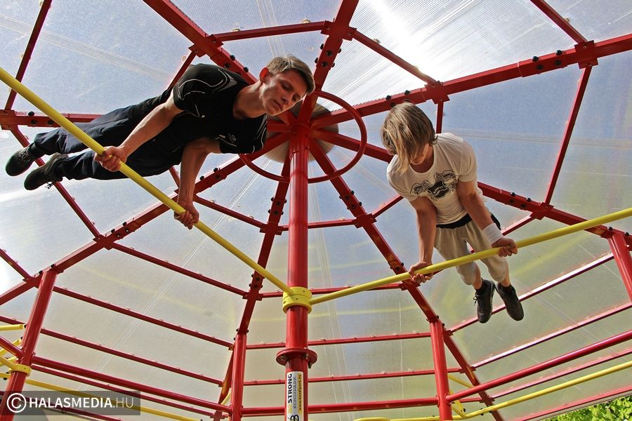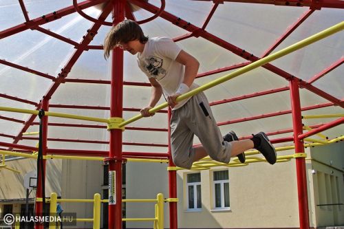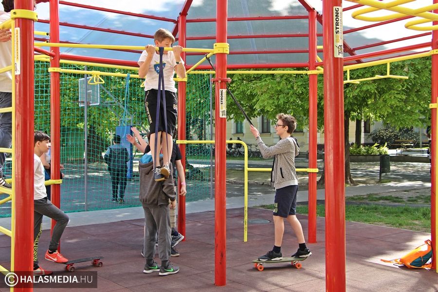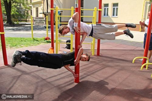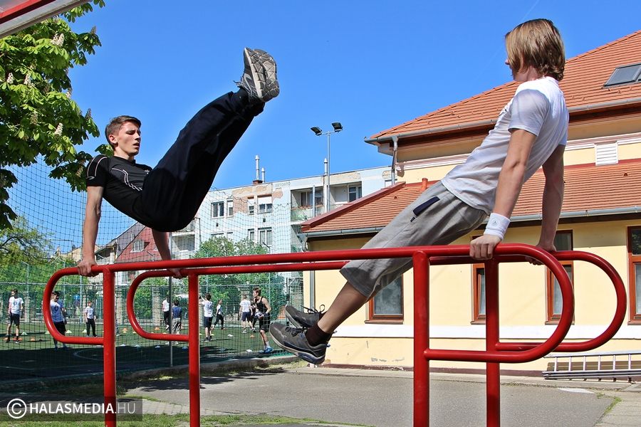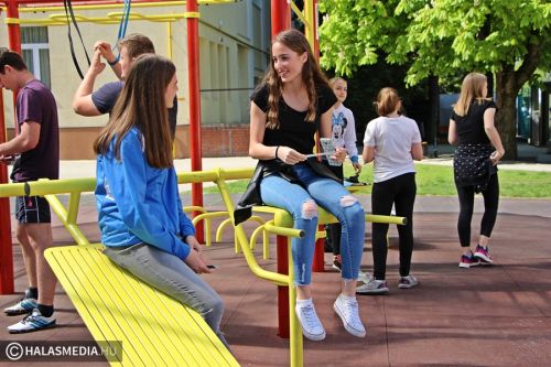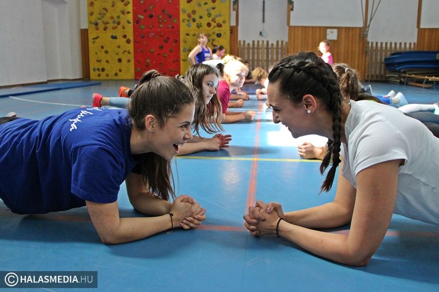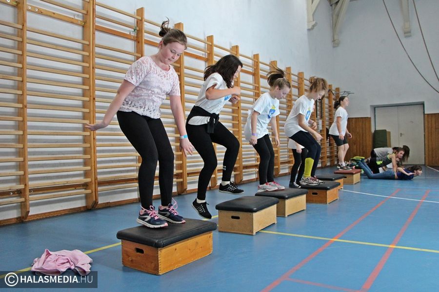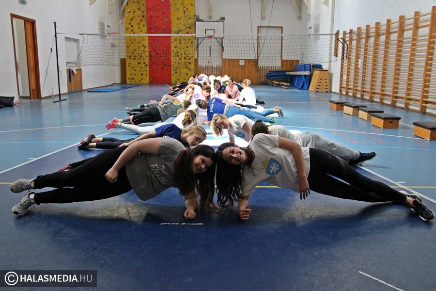 - Igaz, hogy most hétvégén is suliba kellett jönnünk, de nem bánjuk, hiszen nagyon jó a hangulat. Nem a tantermekben ülünk, hanem különböző sportokat próbálhatunk ki, mi most éppen a sportcsarnokban vagyunk, ahol egyre intenzívebb erőbedobást igénylő gyakorlatokat végzünk közösen. Nagyon jó ez a nap – mondta el weblapunk kérdésére Ágoston Aliz, gimnazista.