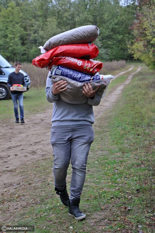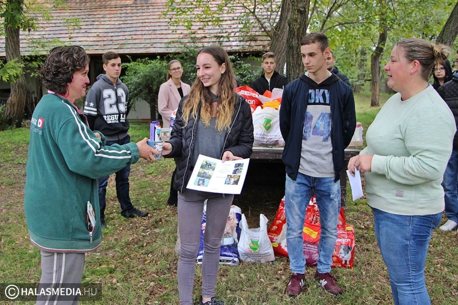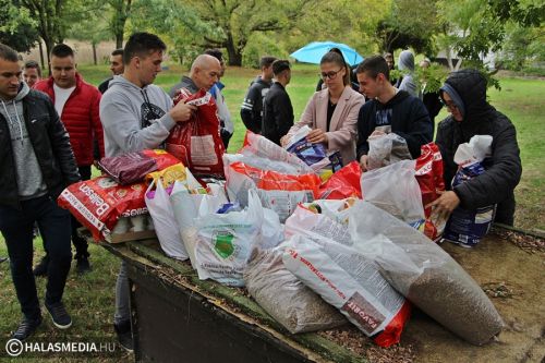 Zsákokban, dobozokban érkeztek a különféle tápok a Kiskunhalasi Állatotthonba. A II. Rákóczi Ferenc Katolikus Gimnázium diákjai és dolgozói személyesen hozták el az ott élő kis kedvenceiknek a finomságokat.