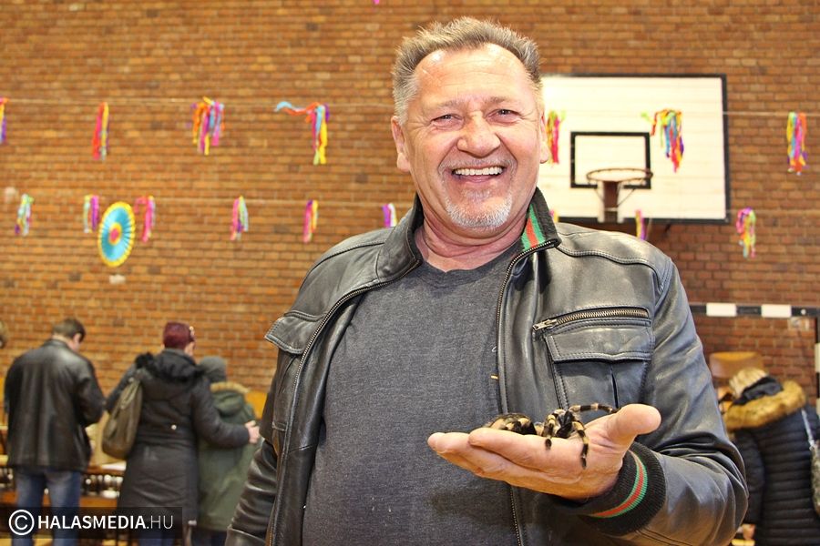 - Néhány éve egy barátom külföldre utazott, és rám hagyta a pókját. Hosszú ideig volt nálunk az állat, utána vettem még egyet, majd még egyet, mostanra pedig van egy 500 egyedből álló gyűjteményem. Még csak pár perce nyitottuk meg az ajtókat a látogatók előtt, de máris legalább öt halasi emberrel beszéltem, akik pókokat tartanak odahaza. Bárkinek lehetnek otthon madárpókjai, de arra fel kell készülni, hogy sok odafigyelésre lesz szükség – nyilatkozta Németh József pókgyűjtő.