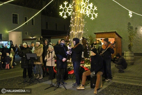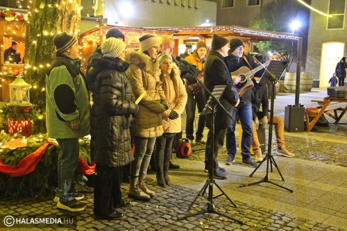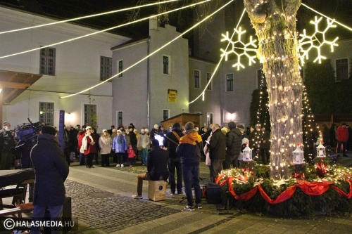 Vasárnap délután, a hagyományok szerint összegyűltek a kiskunhalasiak, hogy közösen gyújtsák meg a város adventi koszorújának első gyertyáját. Ezúttal a helyi baptista gyülekezet tagjai adtak zenés, verses műsort. Újdonság, hogy ebben az évben a karácsonyváró események helyszíne nem a főtéren, hanem a városháza díszudvarában keresendő.