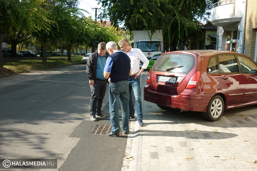 Idő kellet az összetett probléma elhárításához. Több tevékenységet is össze kellett hangolni a kivitelezés során, hiszen meg kellett oldani a vízelvezetést, időt kellett hagyni a tömörítésre, a parkolót is ujjá kellett építeni, szintbe kellett helyezni a csatornafedőket és az út aszfaltját is helyre kellett állítani, de szerencsére sikerült mindezekhez jó, precízen dolgozó kivitelezőket találni – sorolta Vincze Attila.