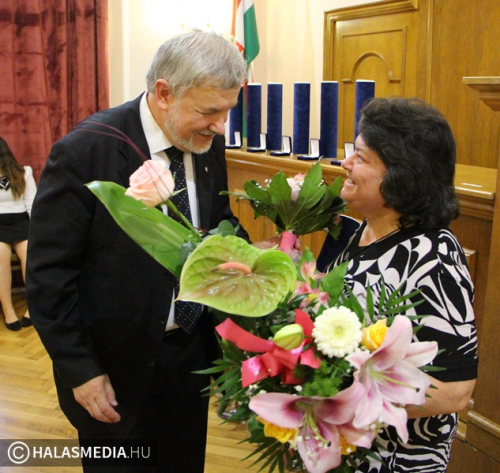 Bödecs Pál gratulál Szeriné Ferencsik Yvettenek
