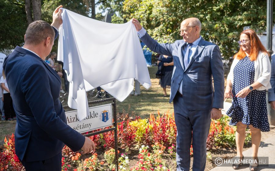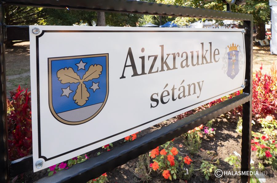 Fülöp Róbert, Kiskunhalas polgármestere és Leons Lídums, Aizkraukle polgármestere szeptember 13-án, szombat délelőtt leleplezték az Aizkraukle sétány névtábláját, a meghívott vendégek, az aizkrauklei, a sepsiszentgyörgyi, a magyarkanizsai és a kronachi delegációk jelenlétében. Az ünnepélyes eseményen közreműködött Vladár Károly dudán. Az új sétány a Bethlen Gábor téren húzódik át.