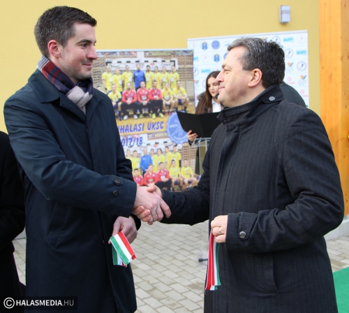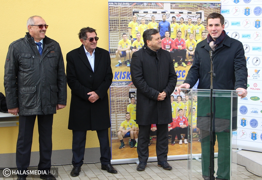 Demeter József elnök azt mondta, hogy a közel 100 millió forintos beruházás 70 százalékát a társasági adójukból helyi és környékbeli vállalkozások biztosították, a maradék 30 százalékot a város adta hozzá. Kerényi János országgyűlési képviselő reményét fejezte ki, hogy a jövőben sok tehetséges kéziabdázót ad a klub a magyar kézilabdának. Bányai Gábor Kiskunhalas és körzete országgyűlési képviselő jelezte a jelenlévő szövetségi elnöknek, hogy tervezik egy műanyag borítású pálya létesítését is a Bibó István Gimnázium udvarában. Kocsis Máté avatóbeszédében elmondta, minden adott ahhoz, hogy sikeresek legyenek a halasi sportolók. hozzátette, jó döntés volt a vállalkozók társasági adójának ilyen hasznosítása.