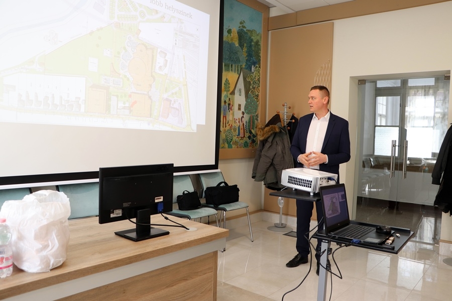 Az elnökségi ülés résztvevőit Fülöp Róbert fogadta a Városháza dísztermében. A városvezető egy prezentációval készült a szakemberek számára, ebben a legfontosabb fejlesztési irányokat szemléltette.