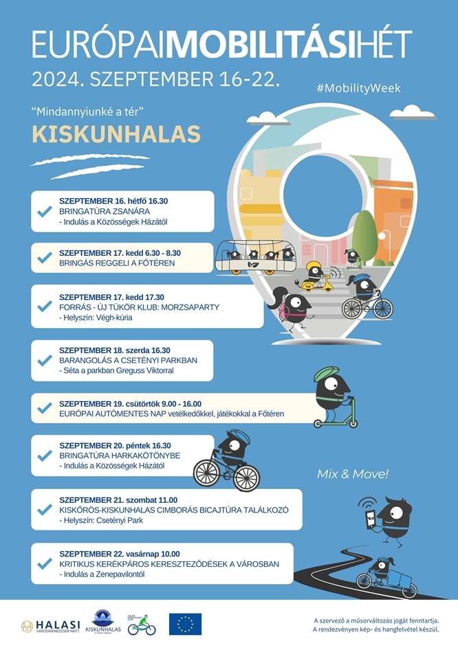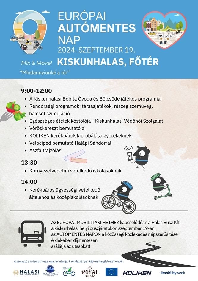 A Halasi Városmenedzser Kft. szervezőcsapata és a programot segítő partnerei mindenkit várnak a mobilitási hét programjaira!