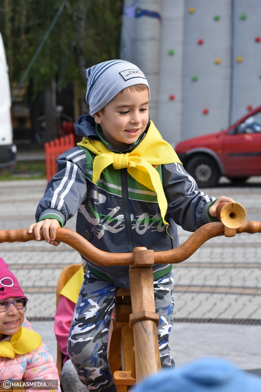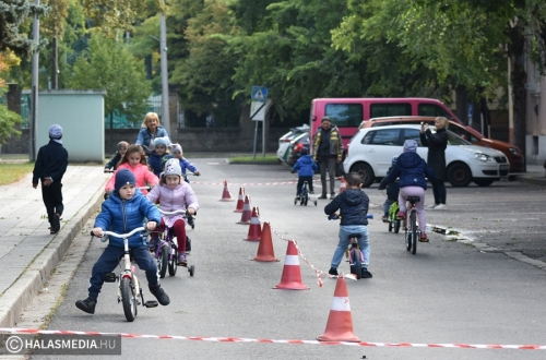 A kakaós csigás bringás reggelit követően különböző programokkal várta a gyerekeket, családokat a szervező Halasi Média és Kultúra Kft. Délelőtt 9 órától sorra érkeztek az óvodás és kisiskolás csoportok a város oktatási, nevelési intézményeiből. A gyerekek elmondták, hogy kíváncsian jöttek és szeretnének minden állomást megnézni, kipróbálni, valamint azt is elmesélték, hogy szeretnek kerékpározni, többen minden nap használják a biciklit.