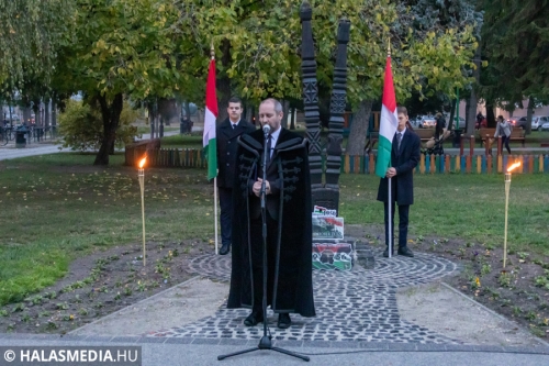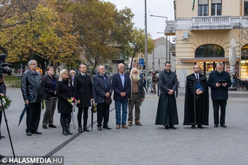 Kiskunhalas képviseletében Fülöp Róbert polgármester és Kuris István László alpolgármester helyezett el koszorút a kopjafánál. Ezt követően a pártok, civil szervezetek és intézmények vezetői is lerótták tiszteletüket az emlékműnél.