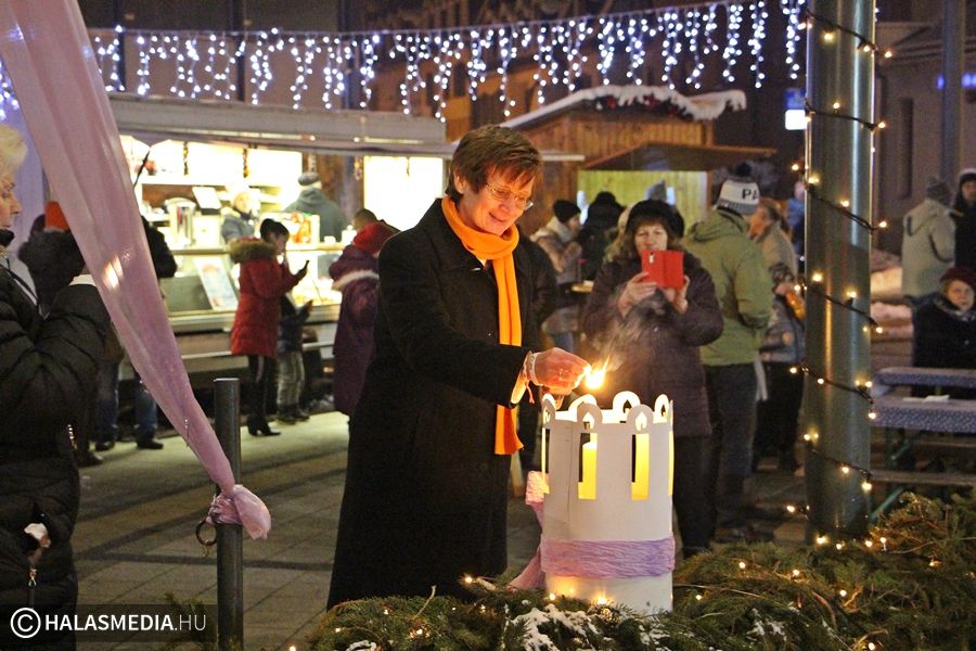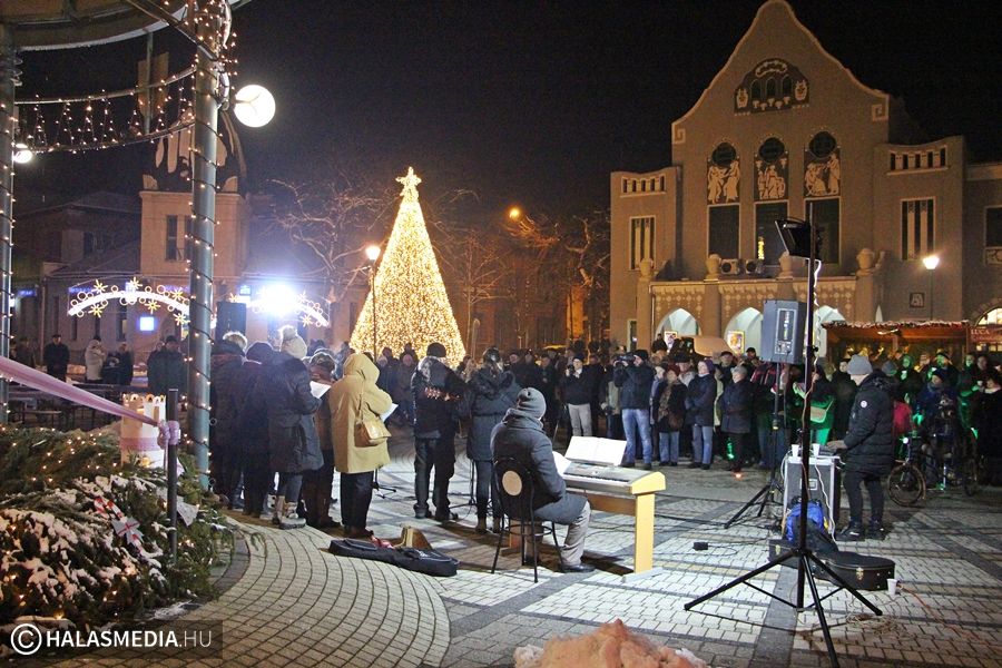 Vasárnap délután 17 órakor a hideg időjárás ellenére is megtelt érdeklődőkkel a belváros. Az evangélikus egyház helyi gyülekezete vallási dalokkal nyitotta meg az eseménysort, majd Honti Irén lelkész osztotta meg a halasiakkal gondolatait.