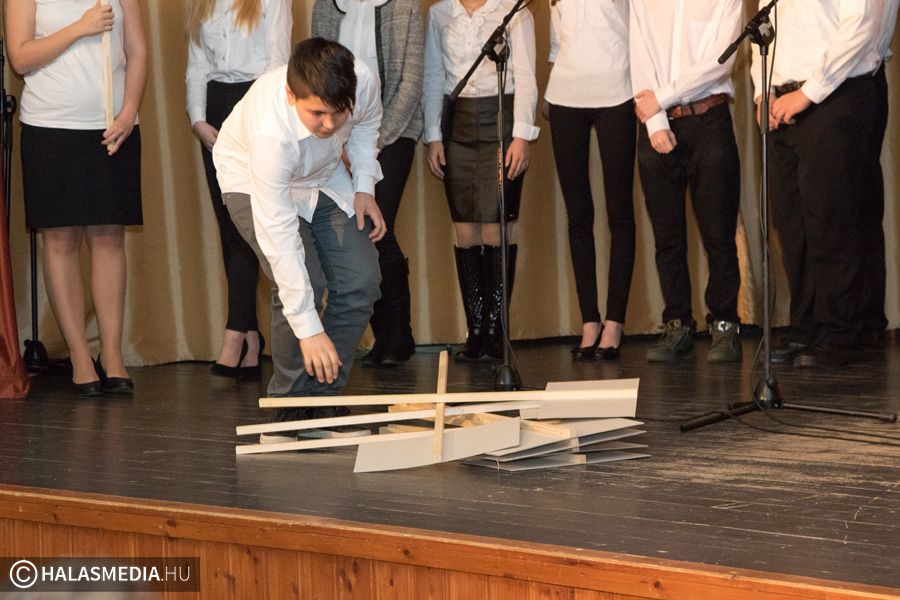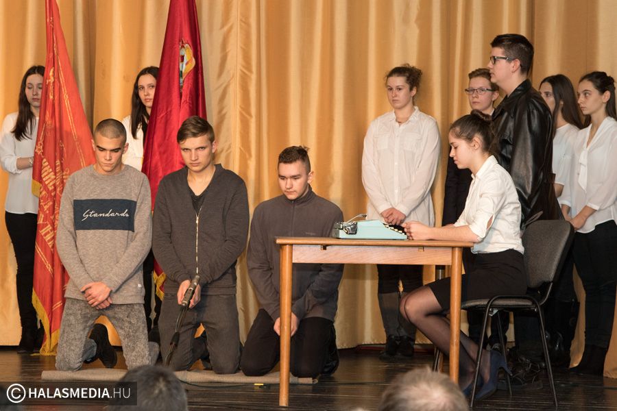 A kiskunhalasi Bibó István Gimnázium pedagógusai állították össze az idei megemlékezés műsorát.
