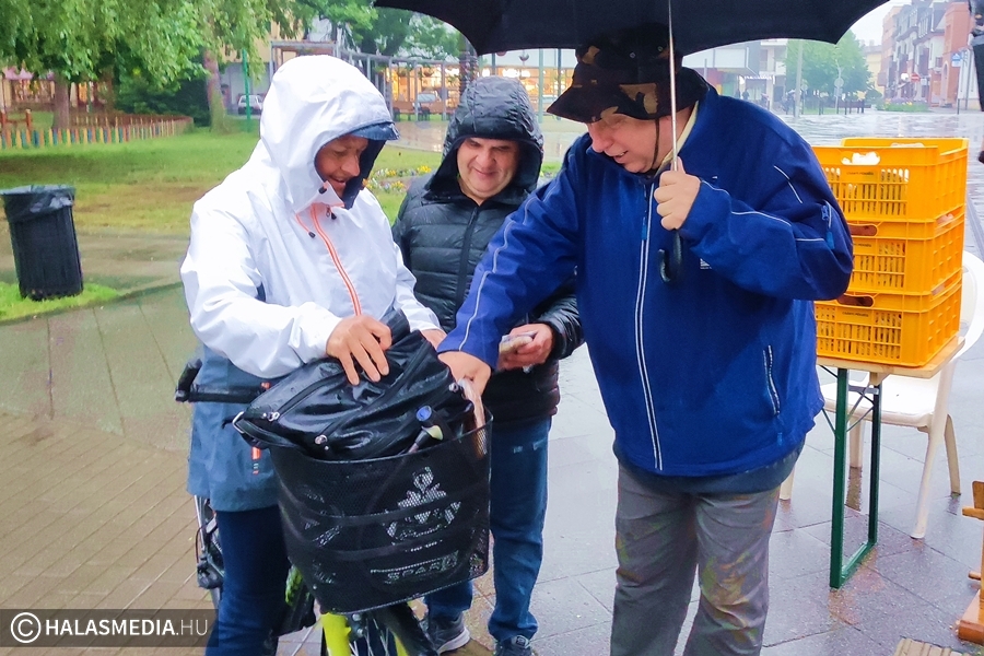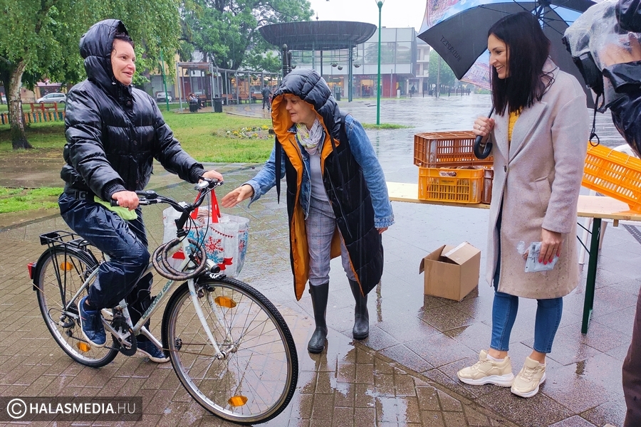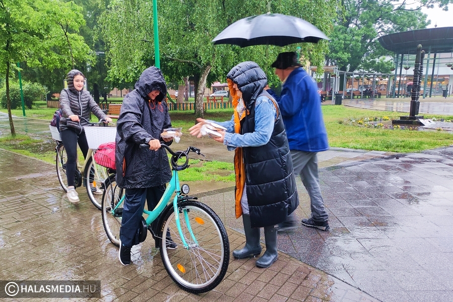 Sem a szervezőket, sem a kerékpárosokat nem riasztotta el a szerda reggeli eső, égdörgés és villámlás. Sikeresen lezajlott a Bringás reggeli, melynek keretében közel 250 kakaós csigából és almachipsből álló csomagot kaptak a lelkes biciklisek.