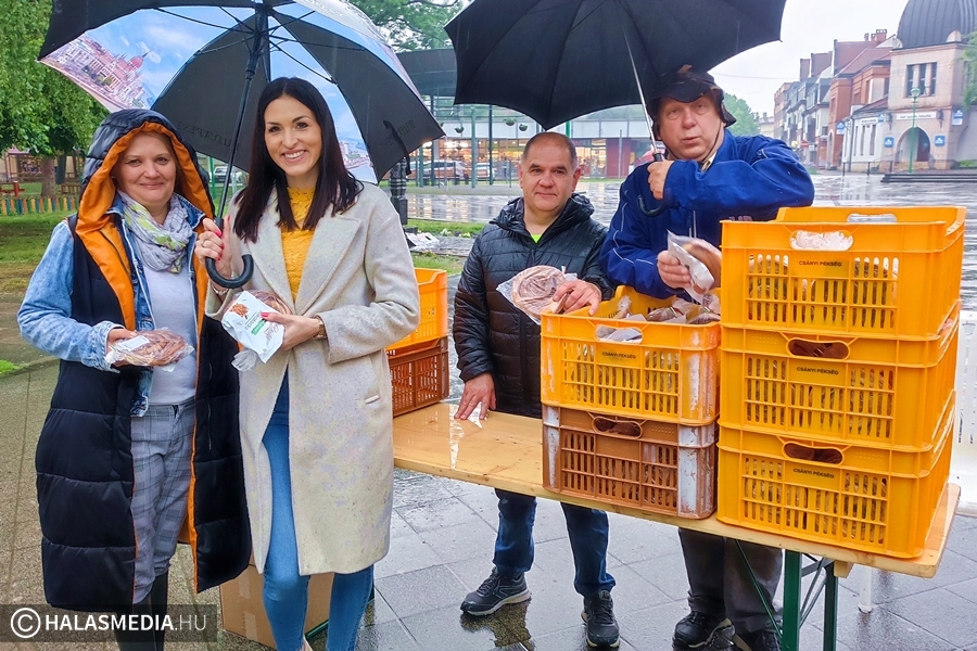 A Bringás reggelihez a Csányi Pékség Kiskunhalasi üzeme 200 kakaós csigát ajánlott fel, amelyet Lajter István vállalkozó még ötvennel megtoldott. A 200 darab almás csomagot pedig a Nasi-Pack Kft. és Bányai Gábor kormánybiztos biztosította.
