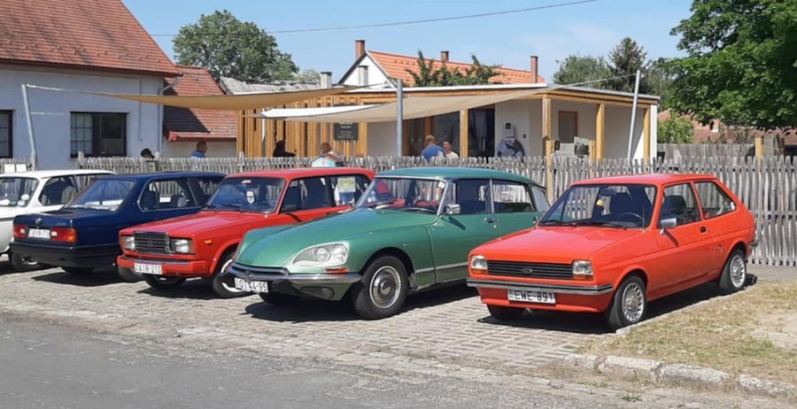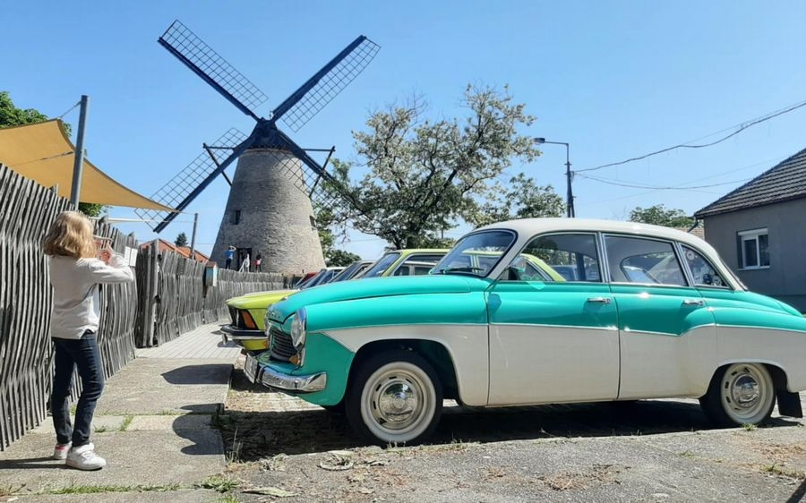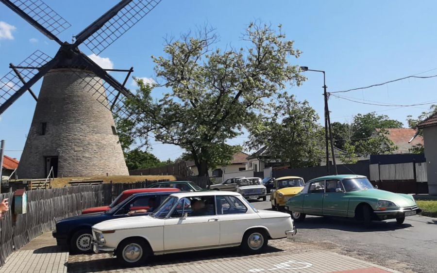 Az Oldtimer Club Pécs tagjai szélmalmunknál pihentek meg