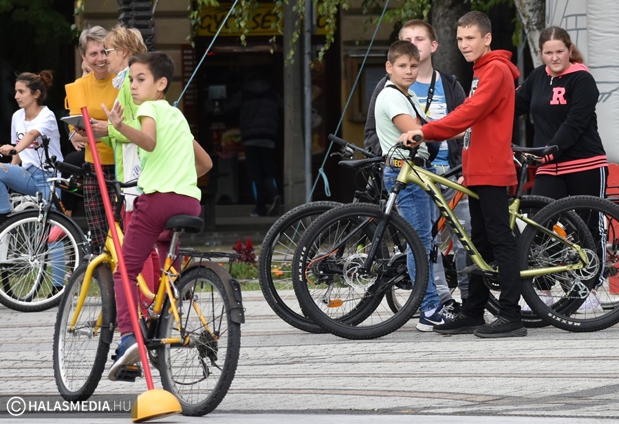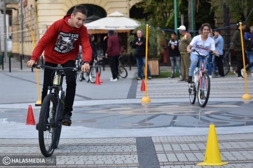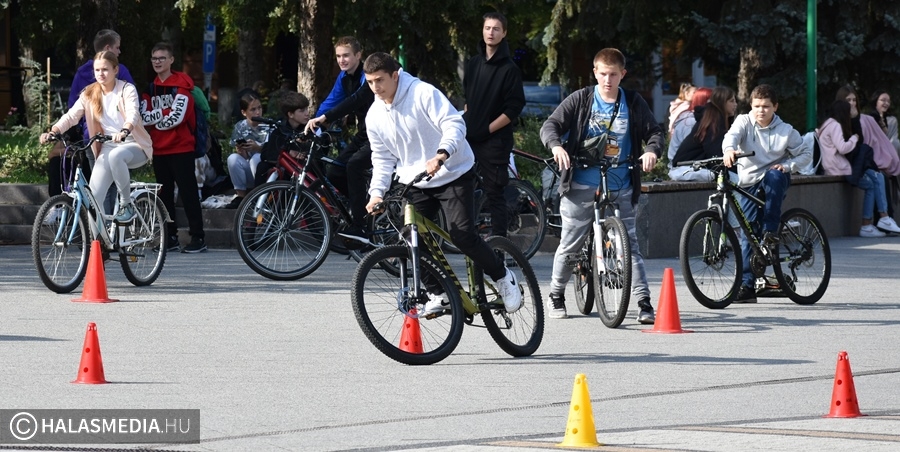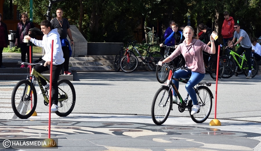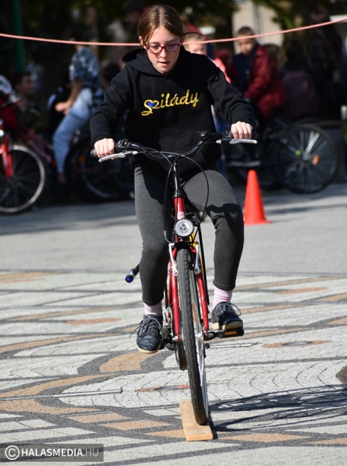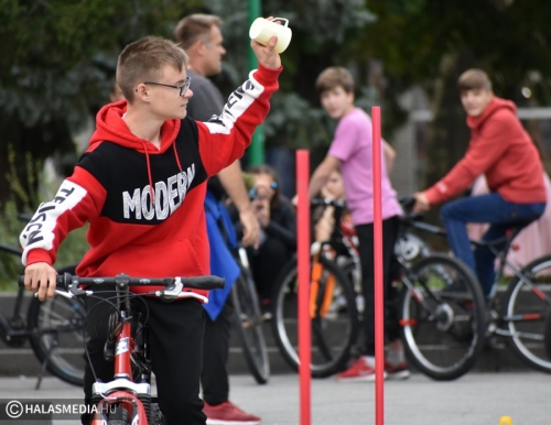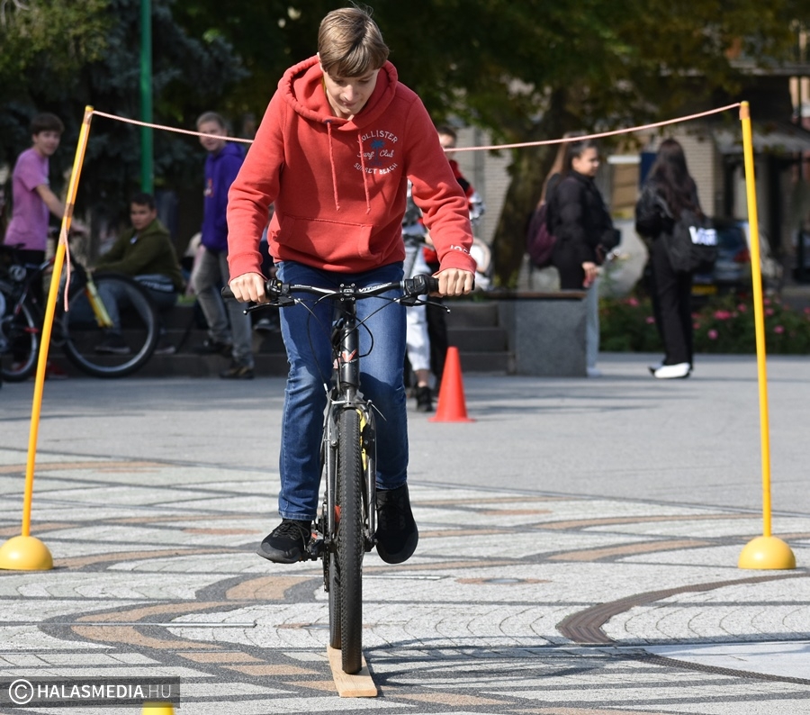 Kerékpáros ügyességi pályává változott a főtér egy része, ahol általános- és középiskolás csapatok számára volt lehetőség arra, hogy kipróbálják, mennyire urai a biciklijüknek. Szloboda Mihály testnevelő és segítői igyekeztek úgy kialakítani a játékteret, hogy ne a gyorsaság számításon elsősorban. Az általános iskolák megméretésén hat intézmény teljesítette a négy fordulót. A győzelmet ismét a Szent József Katolikus Általános Iskola és Óvoda szerezte meg, a Fazekas Mihály Általános Iskola, a Kiskunhalasi EGYMI Általános Iskola, a Szilády Áron Református Gimnázium, a Kertvárosi Általános Iskola és a Felsővárosi Általános Iskola előtt. A középiskolák versenyében a II. Rákóczi Ferenc Katolikus Gimnázium és Technikum nyert, a Bibó István Gimnázium és a KSZC Vári Szabó István Szakképző Iskola volt a további sorrend.