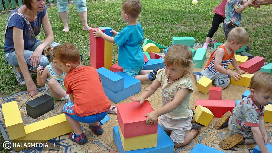 Benépesült az udvar. Gyermeknapot tartottak a Kiskunhalasi Városi Bölcsődében a minap. Ilyenkor a szülők és a gyerekek együtt játszanak. Ez egyben az óvodába induló kicsik ballagási ünnepsége is. A nyári szünet után megkezdődik az új gyerekek beszoktatása.
