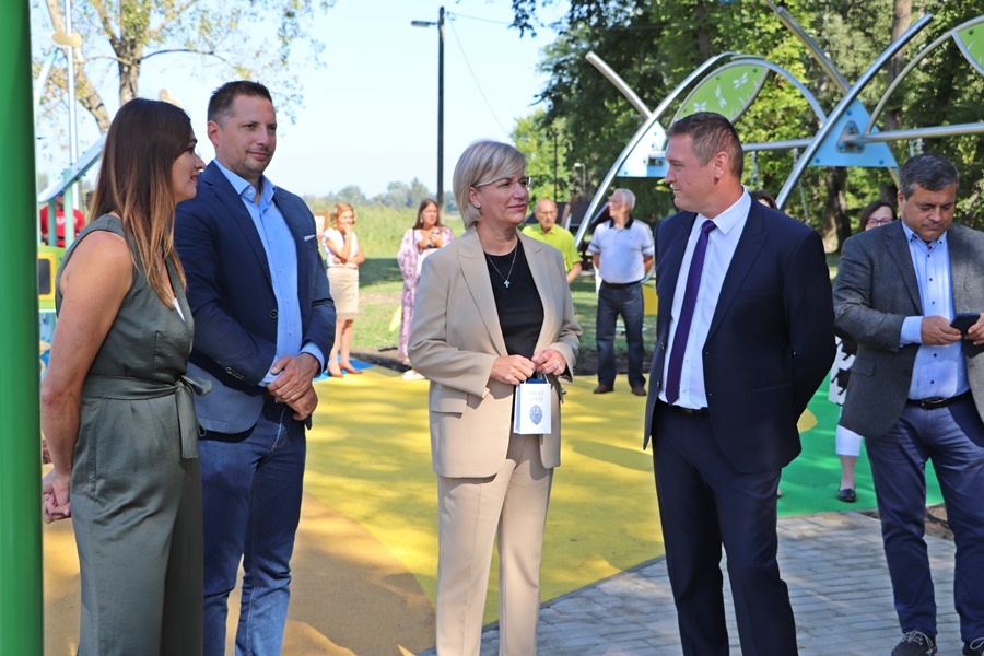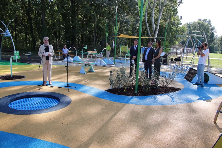 A kiskunhalasi avatóünnepségen Mager Andrea a Szerencsejáték Zrt elnök-vezérigazgatója elmondta a most átadott befogadó játszótér a vízi világ tematikáját követve nyújt kikapcsolódást.