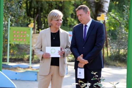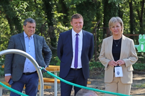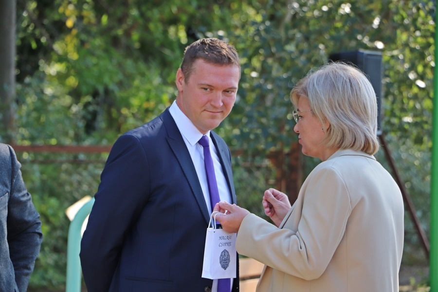 Fülöp Róbert Kiskunhalas polgármestere egy halasi csipkével lepte meg Mager Andreát. A polgármester elmondta, a település legszebb játszótere készült el a projekt keretében.