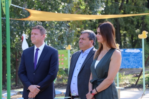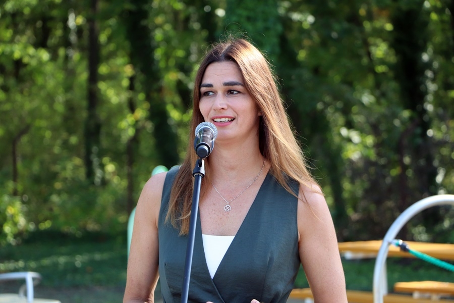 A játszótér építési program jószolgálati nagykövete Drávucz Rita világ és Európa-bajnok olimpikon vízilabdázó is köszöntötte a megjelenteket. Mint érintett szülő hívta fel a figyelmet a fogyatékossággal élők széleskörű integrációjára.