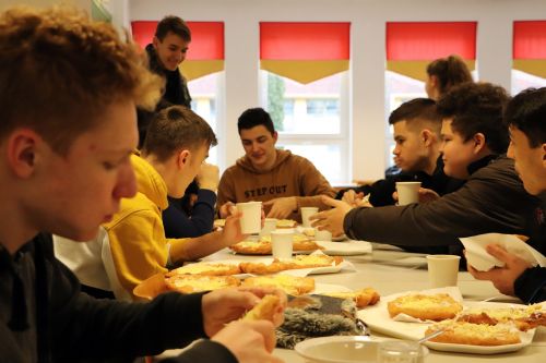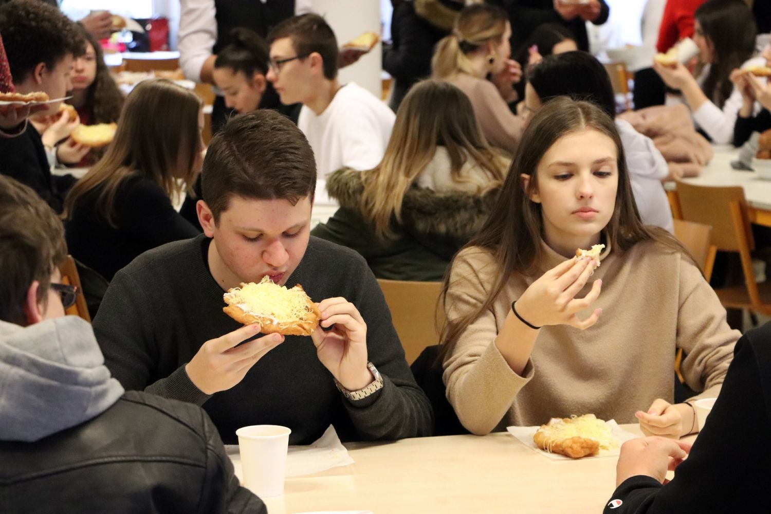 A fiatalok közösen elénekeltek egy tavaszköszöntő dalt, majd az ebédlőben folytatódott a rendezvény. A szülői munkaközösség tagjai friss lángossal és teával várták a télűzőket. Több mint ötszáz lángost sütöttek ki a délelőtt folyamán, olyan finomra sikeredett, hogy nem is maradt belőle.