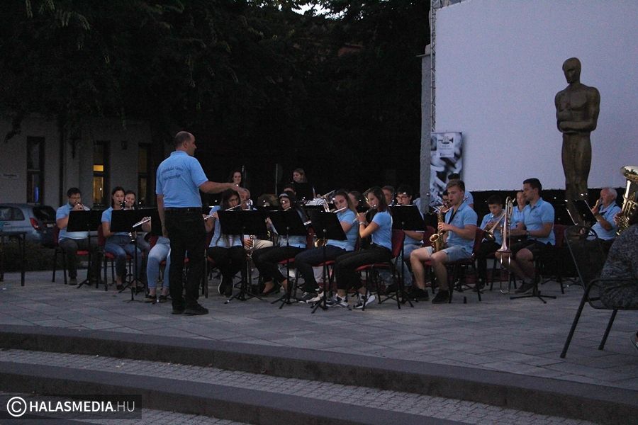 Pénteken este 7 óra után nem sokkal a Halas Concert Band fellépésével vette kezdetét a Kiskunhalason első alkalommal megrendezett szabadtéri moziest. A zenészek természetesen ismert filmzenei blokkokat játszottak, ráhangolva a közönséget a nem sokkal később kezdődő mozifilmre.